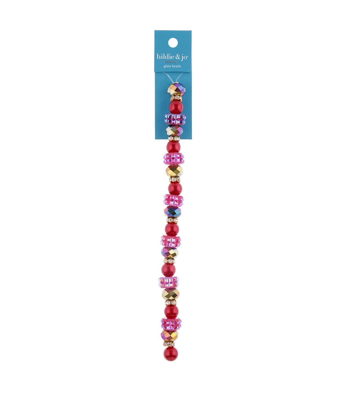 Brightly colored, the hildie & jo Assorted Glass Wheel Bead Strand will bring elevated beauty to your handmade designs. The shiny red round beads are strung with gold-toned and pink-hued spacers in this strand. You can pair them with metal and glass beads of complementing hues, each sold separately, to fashion necklaces and earrings.