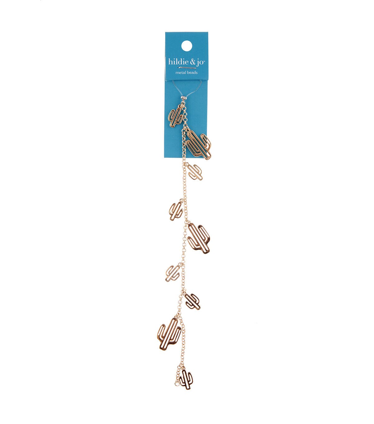 Add a quirky look to your jewelry pieces with the hildie & jo Assorted Metal Cactus Charms on Gold Chain. This strand contains unique charms shaped like cacti. Pair these charms with flower and leaf-shaped charms and colorful beads to create a gorgeous bracelet or anklet. You can also gift them to a jewelry-making enthusiast in your life.