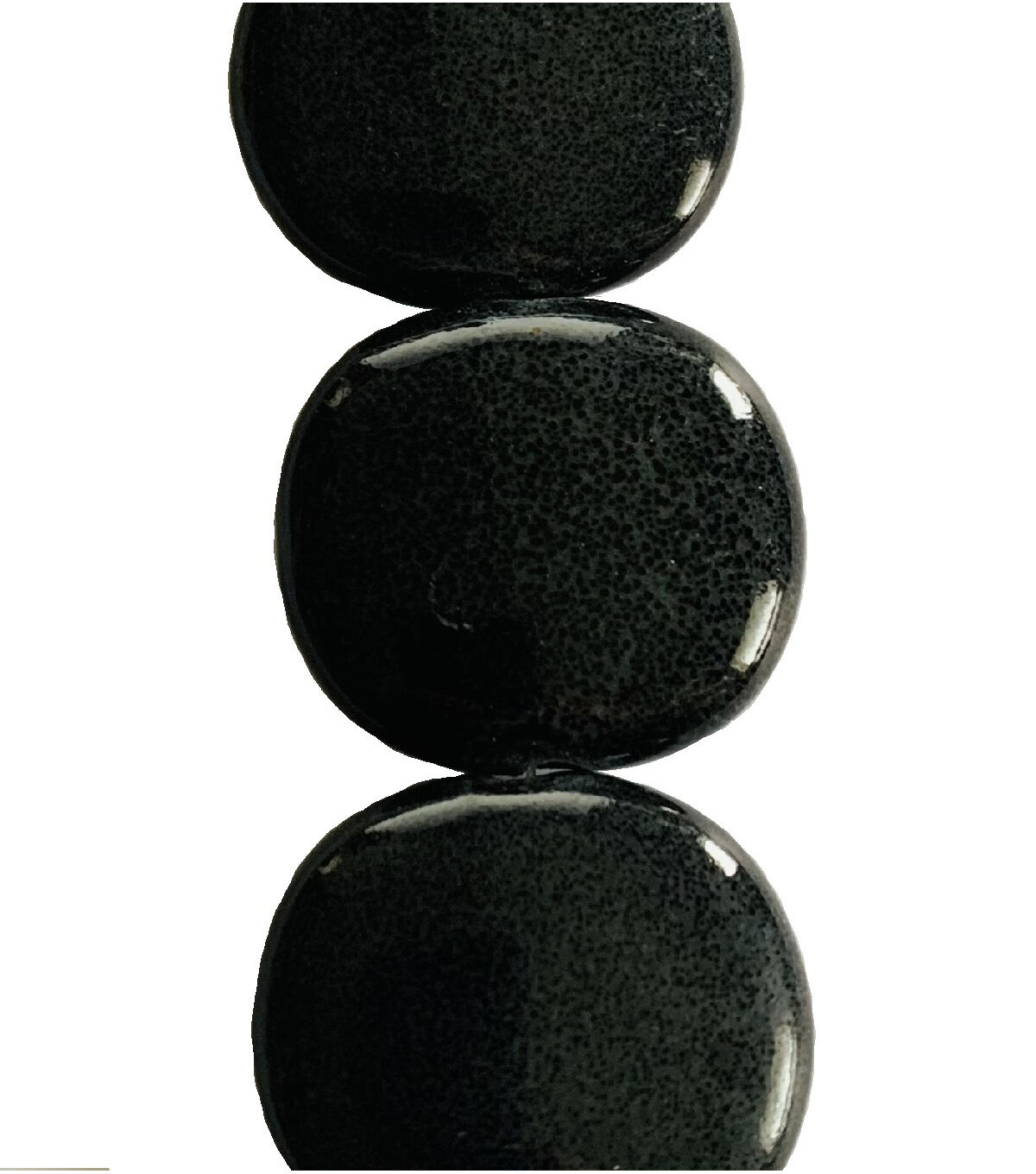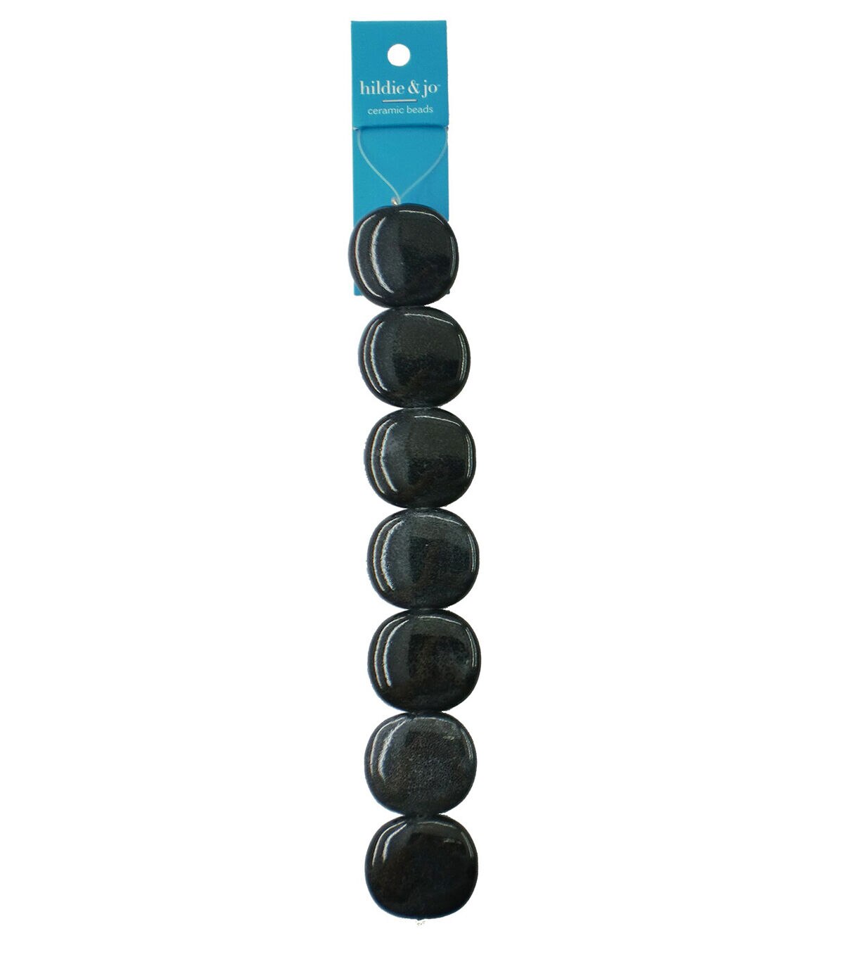 Make an elegant neckpiece or bracelet using the hildie & jo Circular Ceramic Beads - Black. This 7-inch strand has stacked, circular, smooth black beads. You can also use these beads to accentuate DIY decor or craft projects. These beads come on a clear wire. You can also use these beads to accentuate DIY decor or craft projects