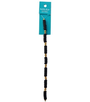Create a pair of beautiful dangler earrings with the hildie & jo Round & Disc Glass Strung Beads - Black & Gold. This clear wire strand consists of multiple black disc beads with a gold-toned round bead on each end. In-between the round beads is a gold-toned spacer bead. You can use them to create bracelets, necklaces and more.