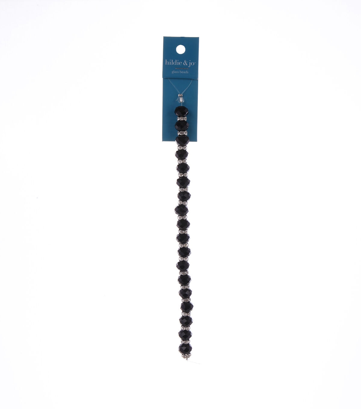 Create gorgeous custom jewelry pieces using the hildie & jo Rondelle Crystal Glass Strand with Metal Spacers - Black. This 7-inch strand contains faceted beads measuring 7 mm x 10 mm and spacer beads. You can use these beads to design necklaces, bracelets and more. They will also make a great addition to the gift basket of a jewelry designer.