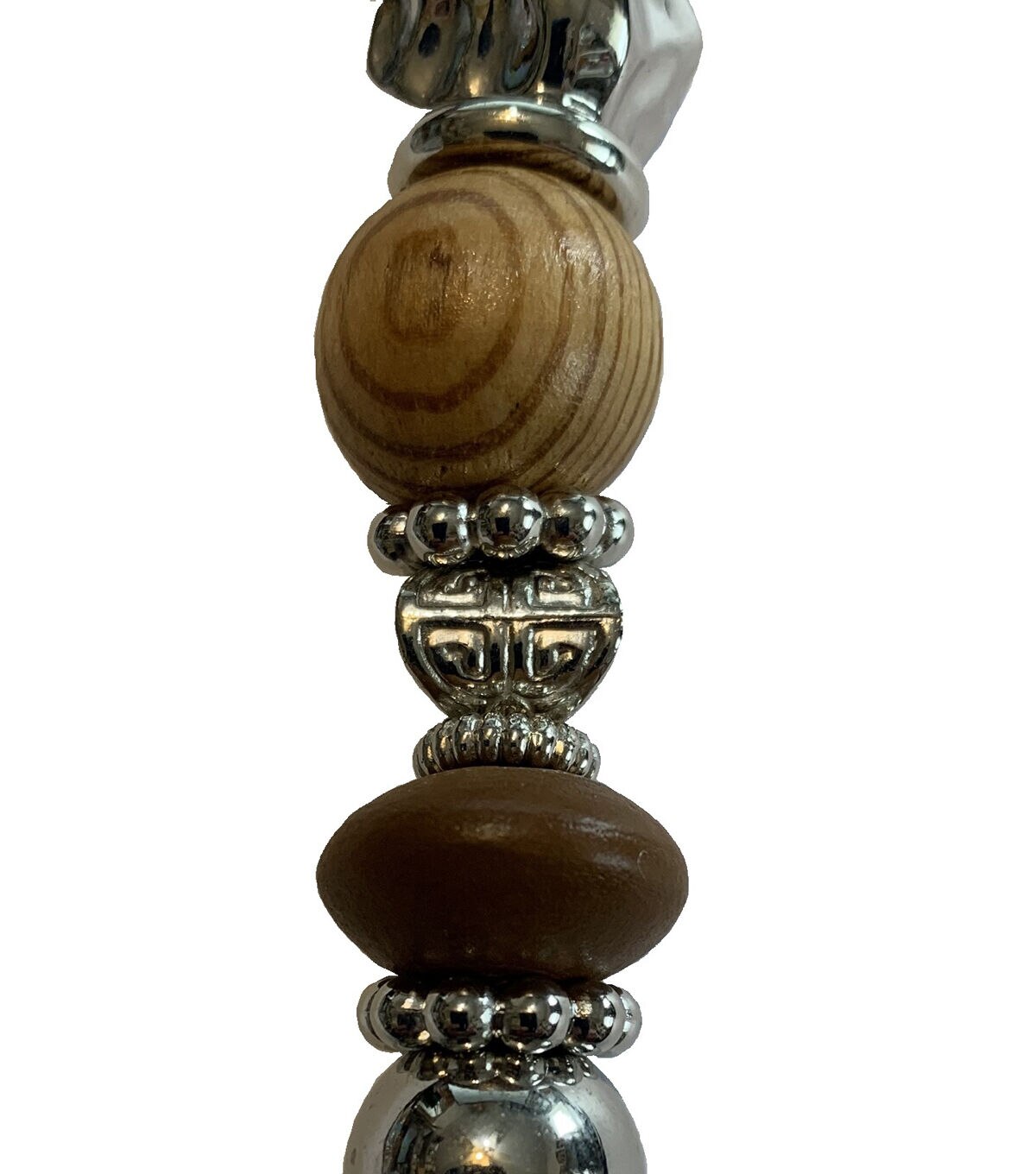 Create a simple yet elegant piece of jewelry with the hildie & jo Wood & Resin Bead Strand - Brown & Silver. This 7-inch beads strand flaunts resin beads in brown and silver tones. They come in varying shapes and sizes. Some of them sport unique patterns. It also has silver-toned spacer beads flaunting a textured finish.