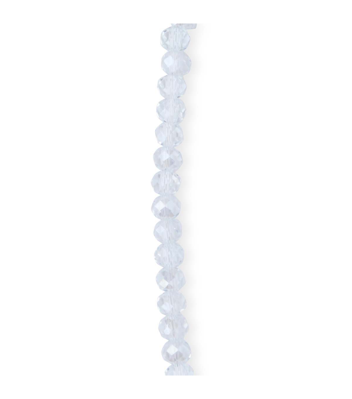 Add sparkle and light to your jewelry creations with the hildie & jo Aurora Borealis Rondelle Glass Bead Strand - Clear. This pack contains a strand of clear crystal rondelle beads with a sparkly aurora borealis finish. They can be used as is or combined with other beads, chains and findings to design statement necklaces, bracelets or earrings.