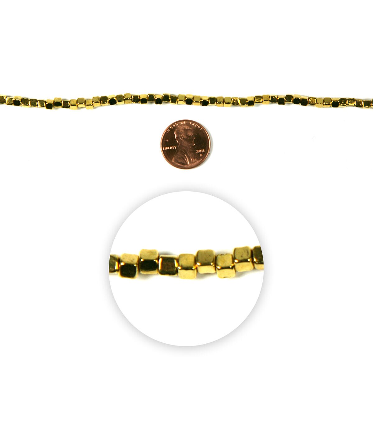 The hildie & jo Cube Metal Strung Beads - Gold will lend a stylish touch to your jewelry-making projects. These cube metal beads in a gold tone can be used to fashion attractive necklaces, bracelets, backpack bling and more. Choose from a range of exotic, handcrafted beads from hildie & jo to create trendy jewelry pieces.