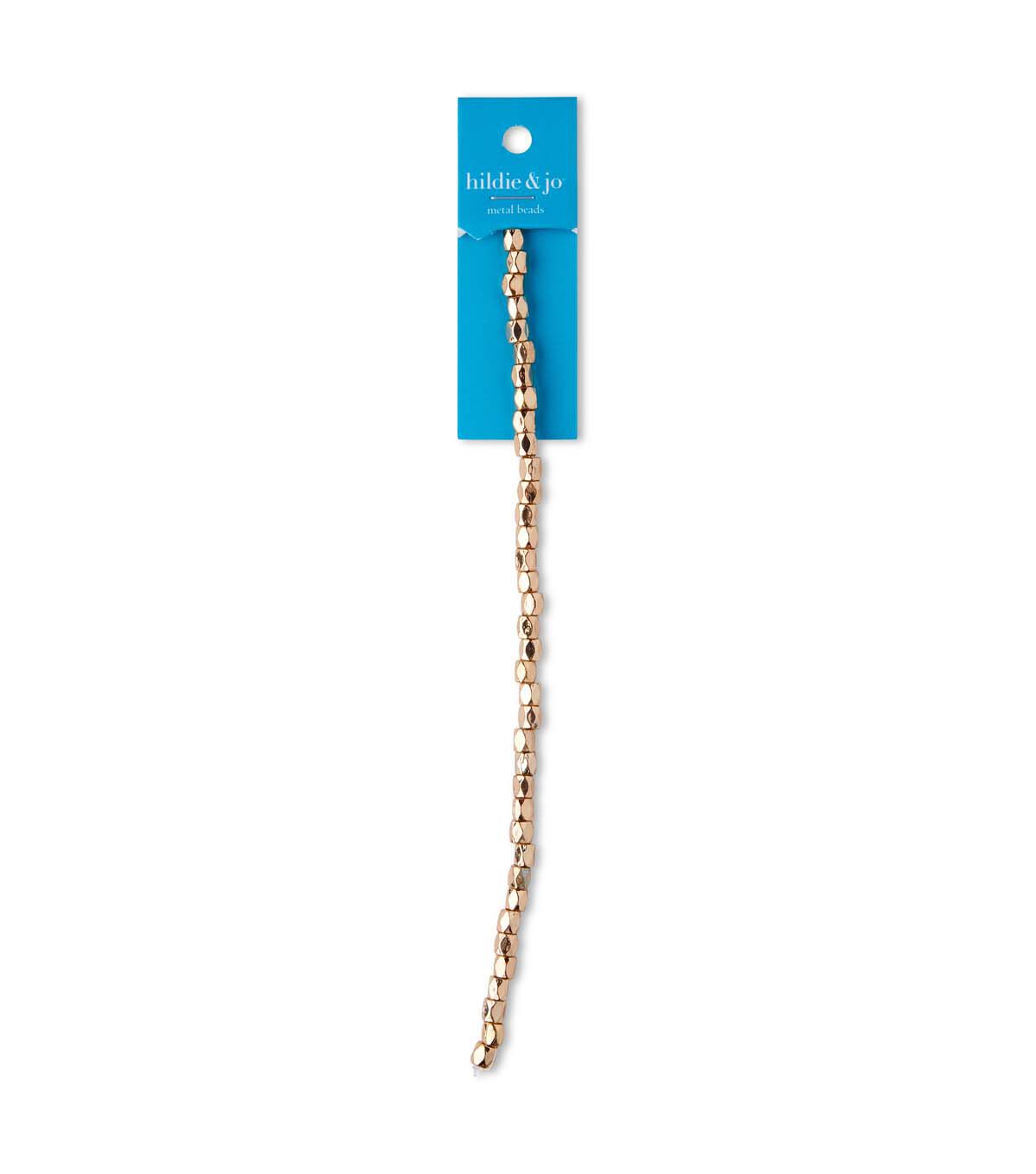 Add a bit of bling to your handmade jewelry pieces with the hildie & jo Faceted Metal Spacer Strung Beads - Gold. This pack includes a 7-inch strand of 5 x 4-mm spacer beads in a lovely gold tone. These faceted beads are neutral enough to complement everything from simple naturals to dramatic crystals. You can mix and match them with other beads, cords and chains for unique looks to your jewelry and beading projects.