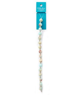 Add a glamorous touch to your jewelry projects with the hildie & jo Mixed Material Bead Strand - Gold Marble Pattern on Pastel. This strand is 7 inches long and comes with two types of beads. The main beads sport a mix of pastel and gold tones along with a marbleized pattern. They are interspersed with round spacer beads. Use them together or team them with other beads to create a bracelet or necklace.