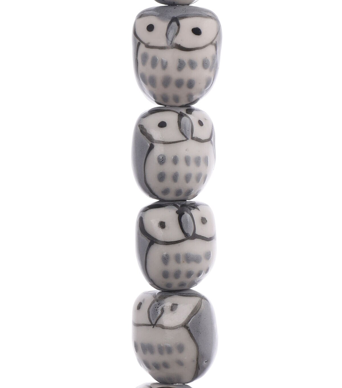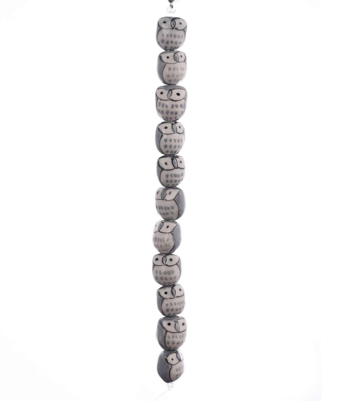 Create lovely jewelry designs with the hildie & jo Ceramic Porcelain Owl Bead Strand - Gray. These handmade, hand-painted beads sport a sketch of owls and are sure to grab attention. Mix and match these porcelain beads with other beads, cords and chains to design unique pieces.