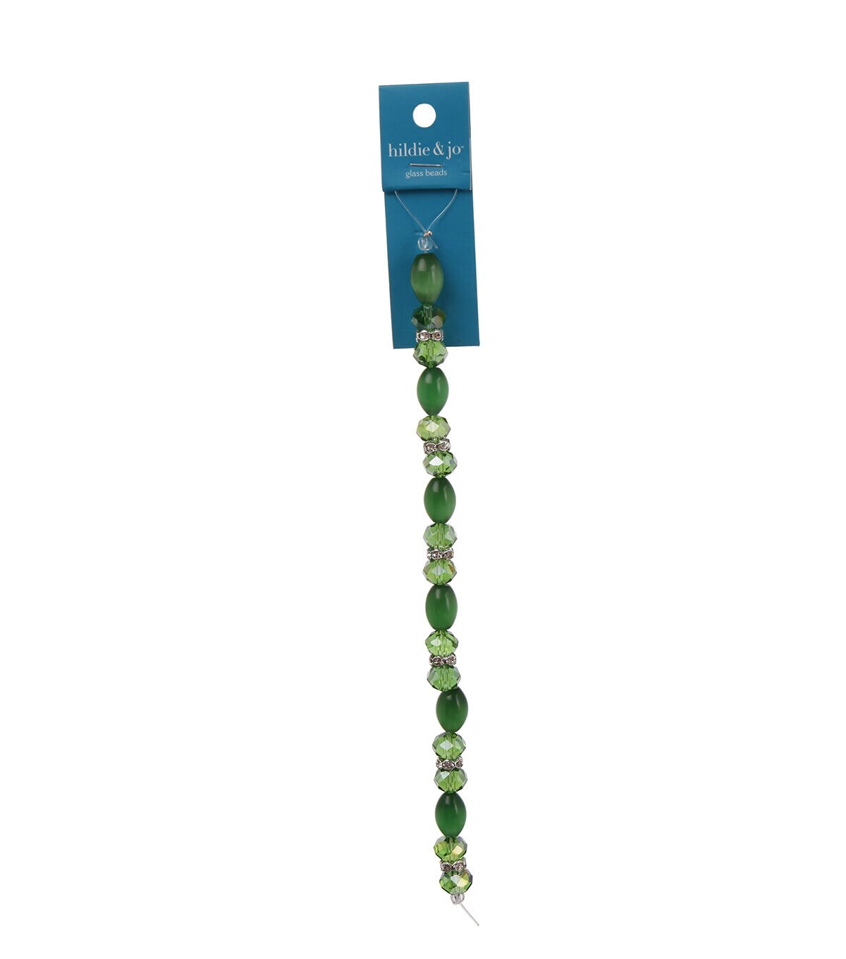 The hildie & jo Glass & Metal Crystal Cat's Eye Bead Strand - Green will make your handmade jewelry pieces stand out. This pack includes a strand of oval cat's eye beads that glow and change appearance with light. It contains a 7-inch strand with six green cat's eye beads, 12 crystal rondelles and six metal and crystal spacer rondelles. You can use them to design lovely necklaces, bag charms, danglers and more.