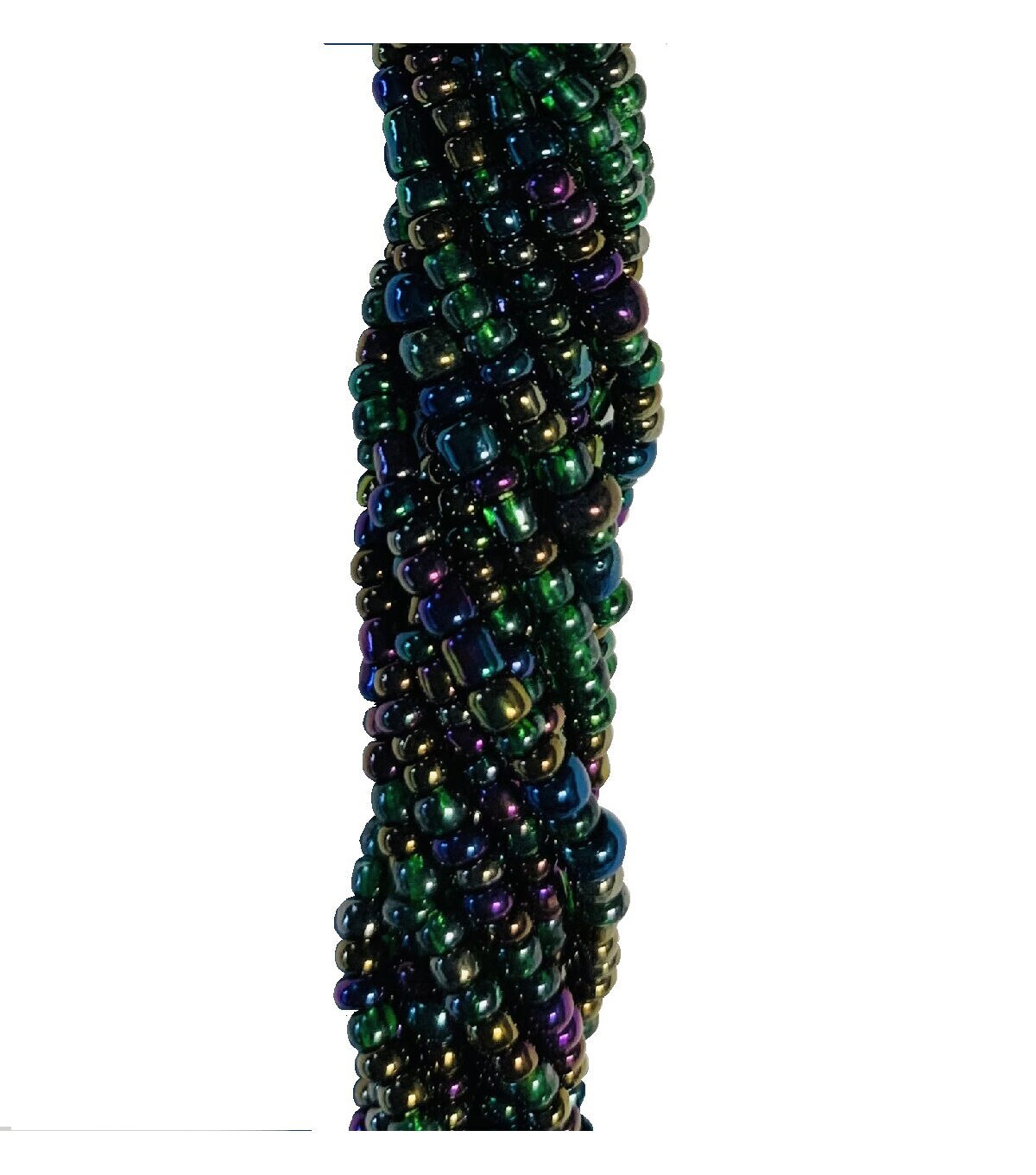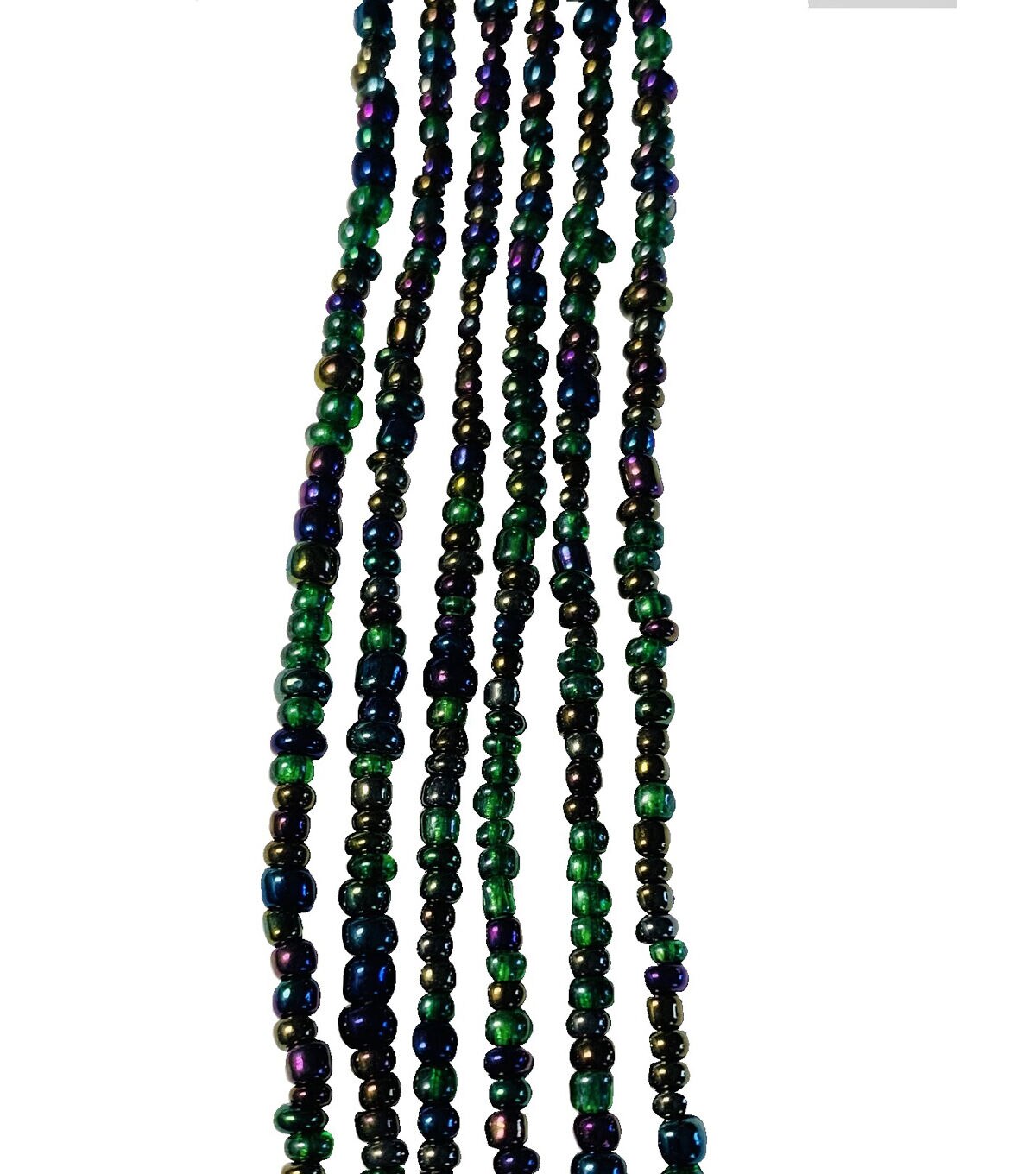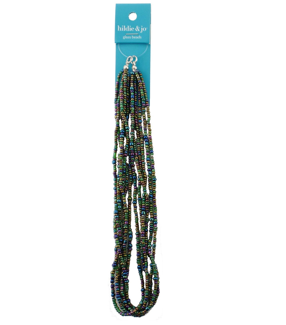 Embellish your jewelry and art projects using the hildie & jo Glass Bead Strand - Iridescent. This strand is made of six clear wire strands of very small iridescent beads in a variety of jewel tones. Each bead is round and the size of the beads varies. Great for any DIY project, this beads strand is made with a clear wire used to bind the beads together.