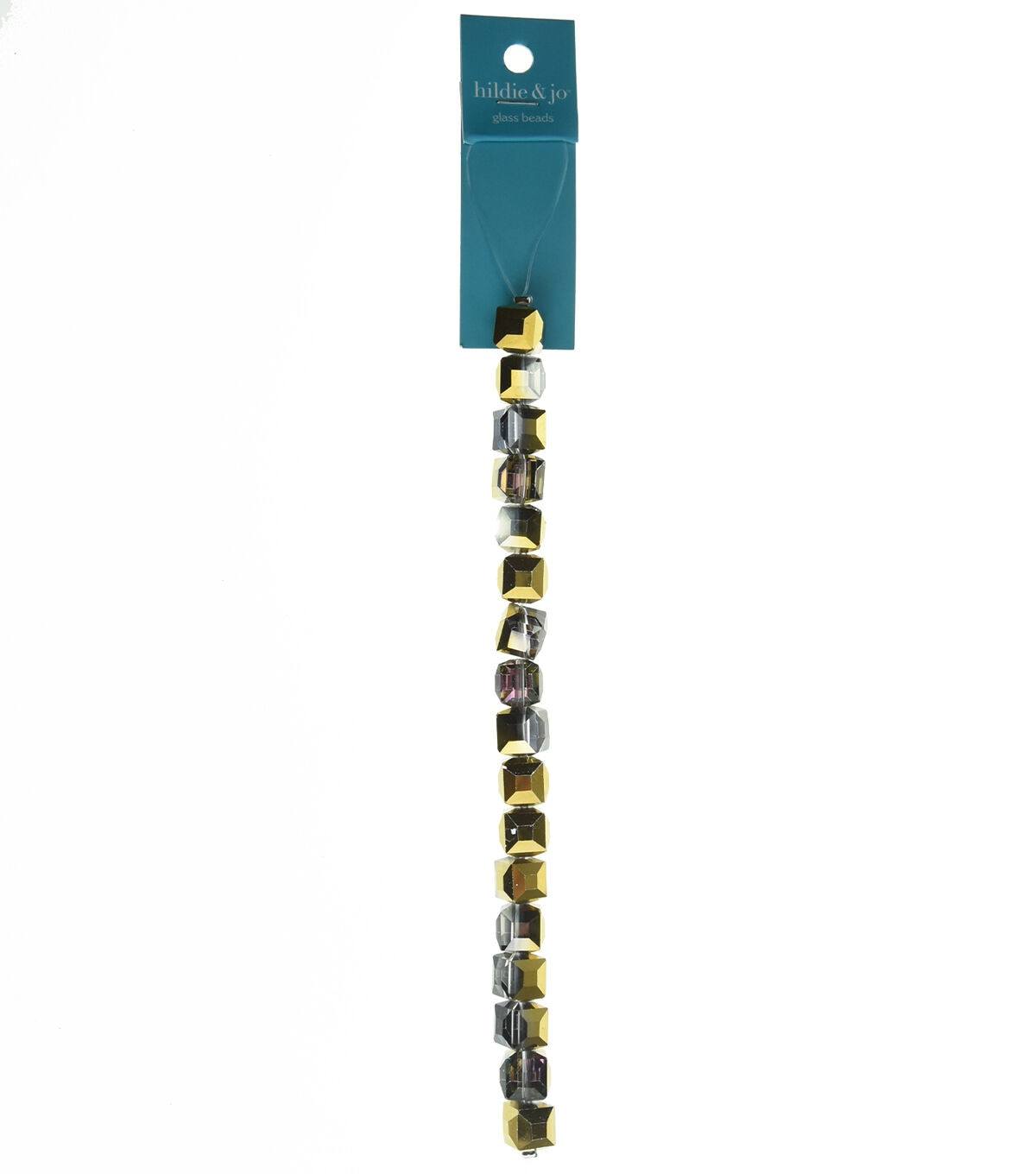 Create unique jewelry pieces using the hildie & jo Square Glass Strung Beads - Iridescent. This 7-inch strand comes with faceted square beads in lovely two-toned hues of gold and iridescent purple. Team them with other beads and charms to create necklaces, earrings, keychains and more