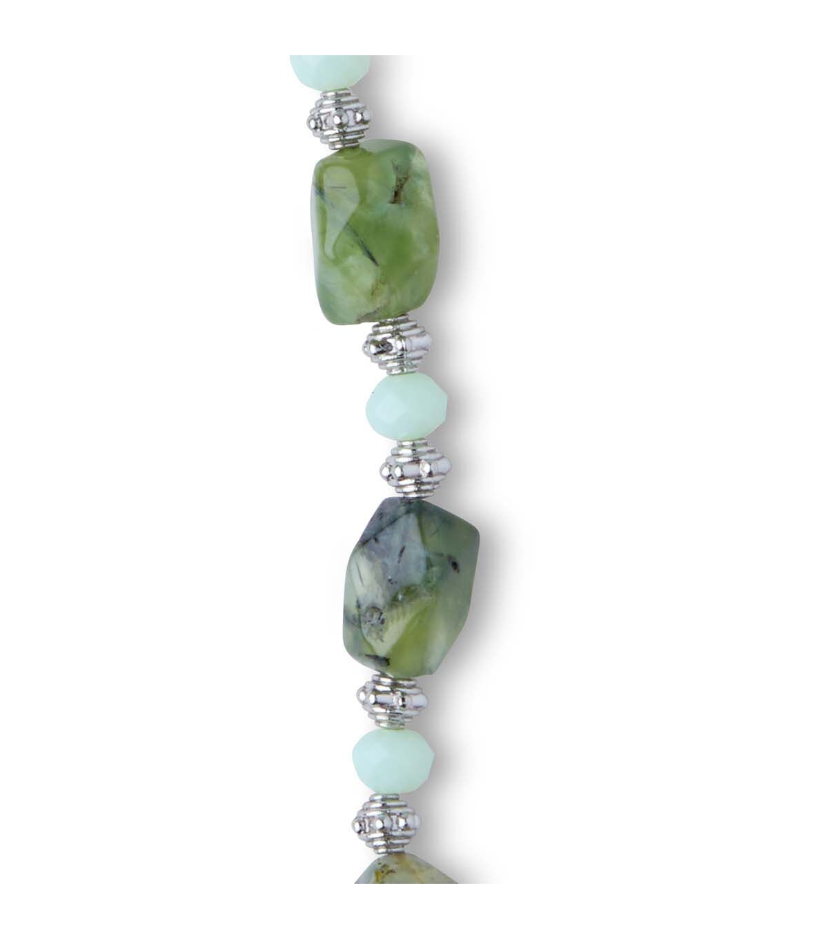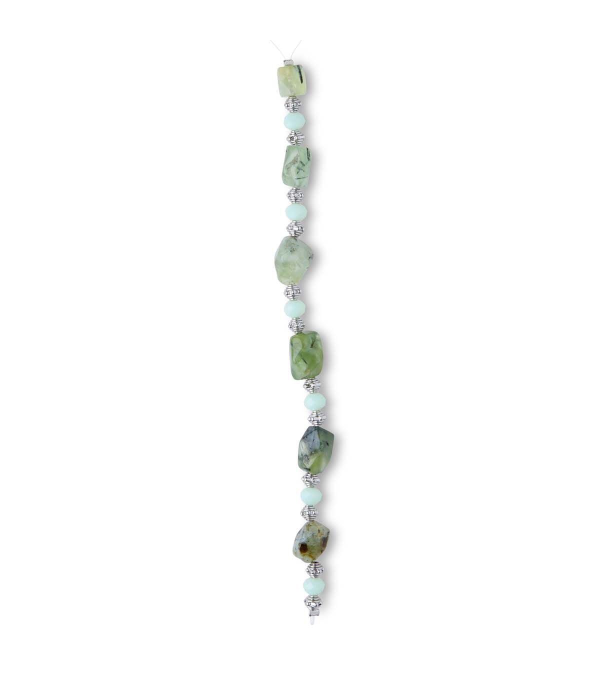 Lend a fashionable touch to a DIY project using the hildie & jo Agate Stone Strung Beads - Light Green. This 7-inch strand sports rectangular faceted agate beads and oval spacer beads. Use this strand to make a lovely bracelet, keychain or any other piece of jewelry. You can also add it to the gift basket of a loved one.