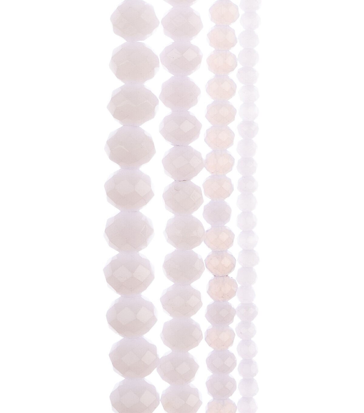 Design unique handcrafted jewelry and beading projects using the hildie & jo Rondel Faceted Glass Strung Beads - Light Purple. This pack includes four gorgeous strands of glass beads in light purple measuring 4 mm, 6 mm, 8 mm and 10 mm. These rondelle beads are faceted and reflect light. You can use them to put together trendy and fashionable beautiful earrings, neckpieces, keychains and more.