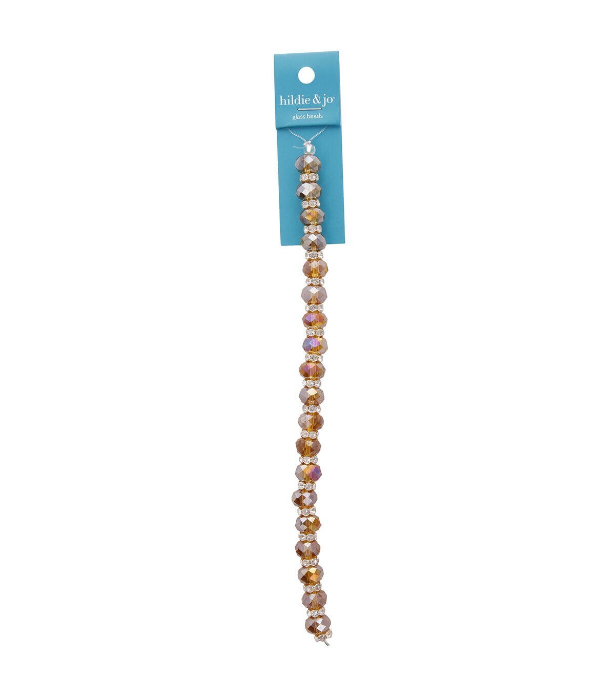 Create gorgeous custom jewelry pieces using the hildie & jo Crystal Glass Bead Strand with Metal Spacers - Light Topaz. This 7-inch strand contains faceted beads measuring 7 mm x 10 mm and spacer beads. You can use these beads to design necklaces, bracelets and more. They will also make a great addition to the gift basket of a jewelry designer.