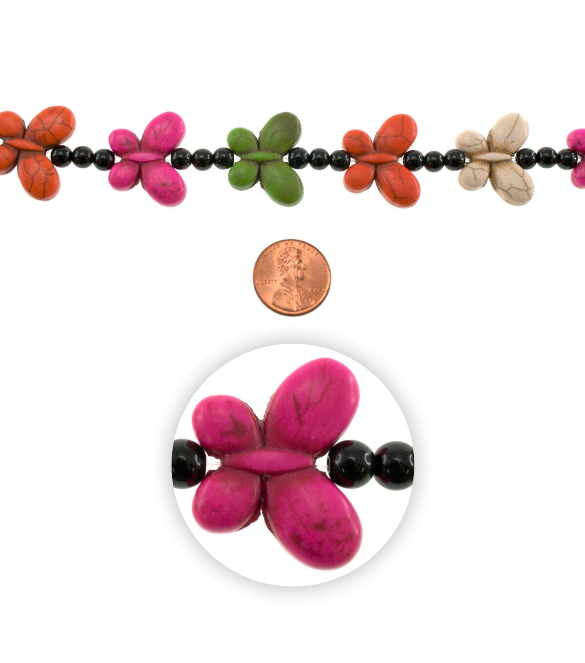 The hildie & jo Fiesta Butterfly Stone Bead Strand - Multi will be a lovely addition to your jewelry-making essentials. Use this 7-inch strand to make beautiful necklaces, bracelets, earrings and lots more for your little girl. Pair them with other beads, sold separately, for a one-of-a-kind look. They also make for a great gifting option for a jewelry enthusiast.