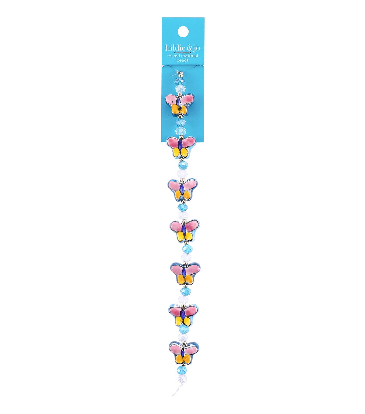 The hildie & jo Mixed Material Butterfly Strung Beads - Multi will make a pretty addition to your little one’s jewelry-making essentials. Glass beads in blue and white and beads shaped like butterflies are included in this strand. They can use the beads as is to create a pretty bracelet or team them with beads in vivid hues to design trendy anklets, earrings, necklaces and more.