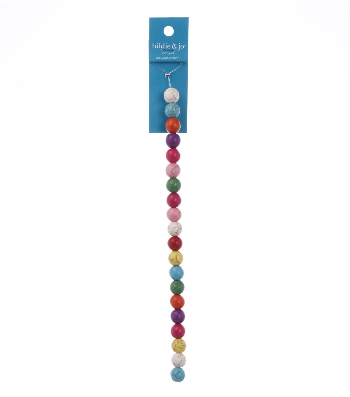 The hildie & jo Fiesta Medium Sphere Turquoise Stone Bead Strand - Multi will make a great addition to your craft supplies. You can use this strand of turquoise stone beads to create quirky, customized jewelry. Add cord, findings and charms for a beautiful, one-of-a-kind look and mix with other strands to design necklaces, charms bracelets and earrings.
