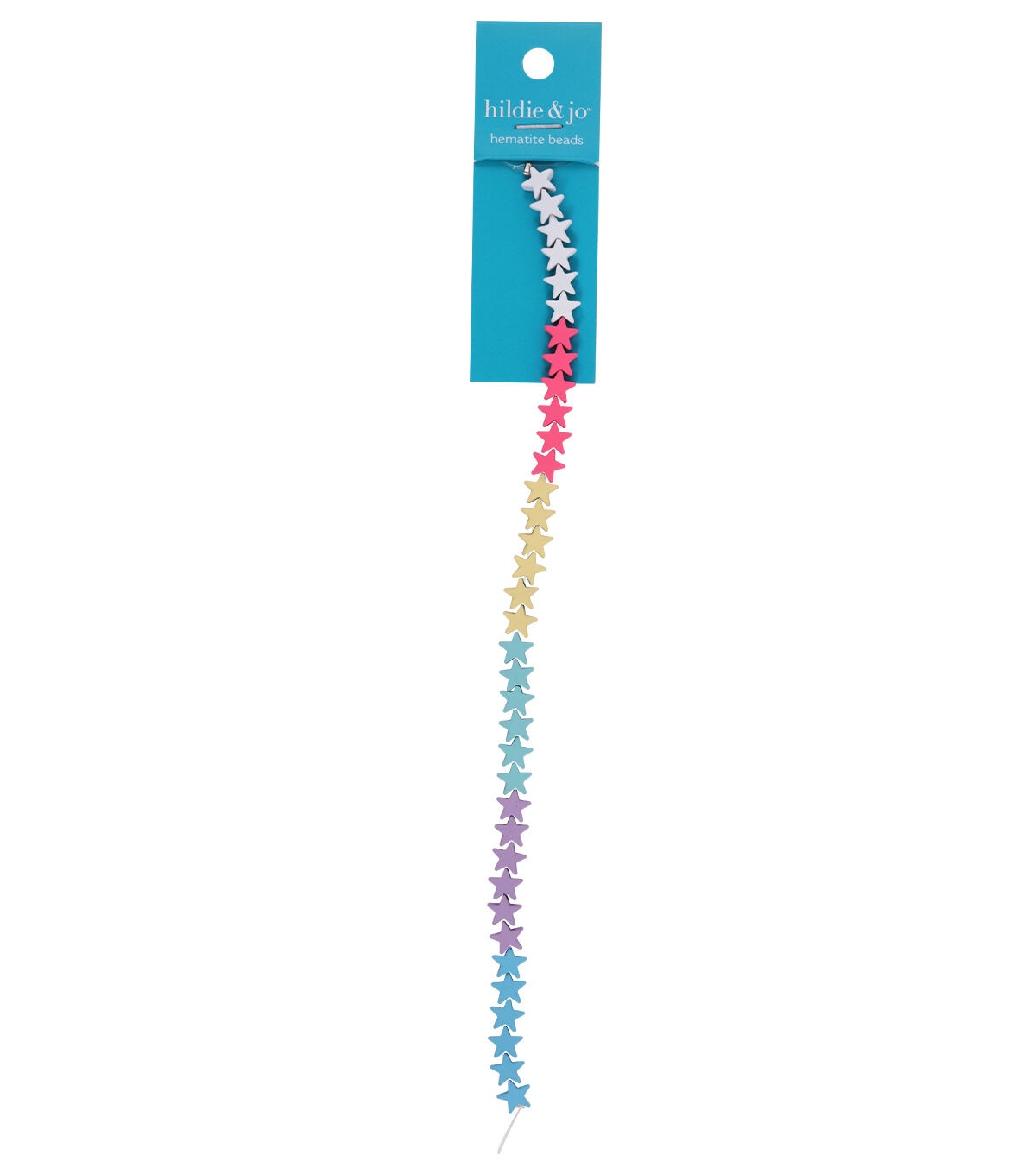 Use the hildie & jo Star Hematite Bead Strand - Multi to add a colorful touch to your jewelry projects. Team these star-shaped hematite beads, sporting multicolored hues, with coordinating glass beads and metal charms to create pretty DIY necklaces, earrings, bracelets and more. You can also design lovely car dangles, keychains and more with them.