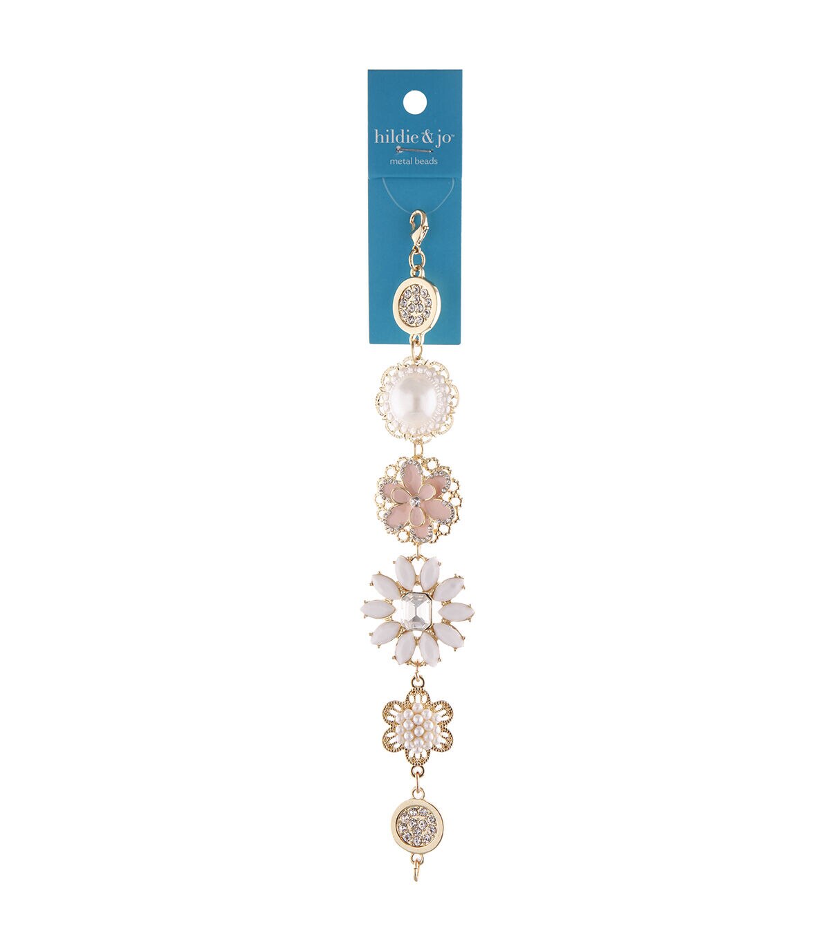 The hildie & jo Flower Metal Strung Beads - Pink will make a great choice for your next jewelry-making project. This pack contains a strand of an assortment of glass, alloy and plastic beads. Add these beads to a chain, necklace wire or leather string to create striking neckpieces. They are also perfect to create bracelets, anklets and more.