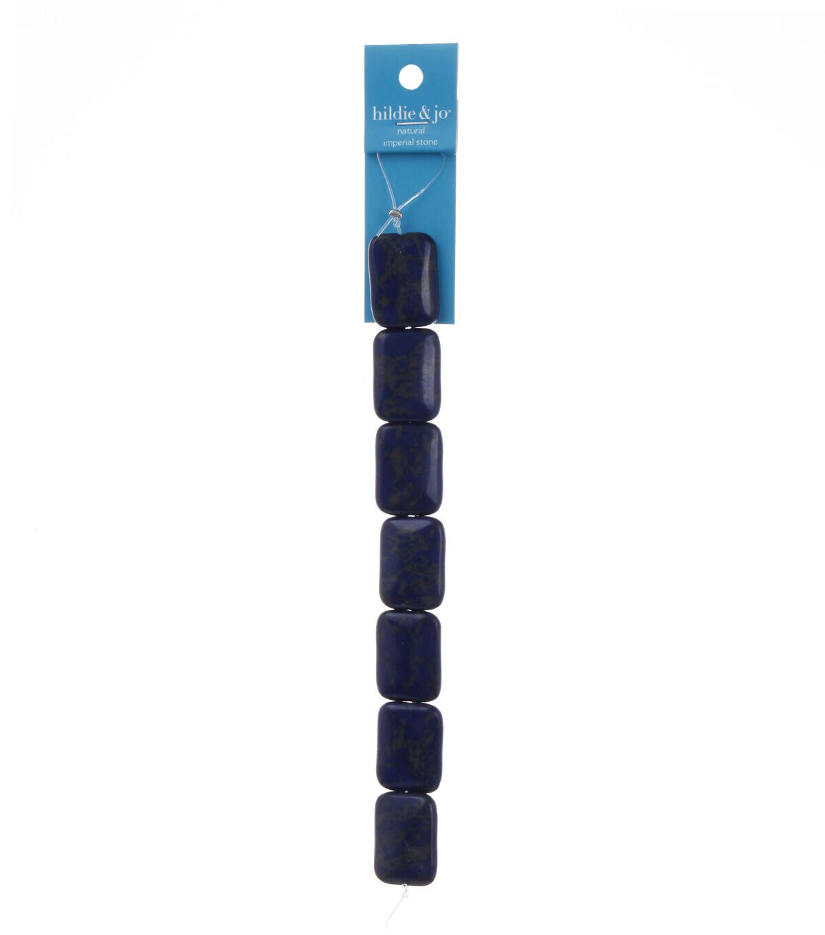 The hildie & jo Rectangle Imperial Jasper Stone Strung Bead Strand is sure to make your handmade jewelry creations stand out. This pack contains a 7-inch strand of beautifully textured imperial jasper beads sporting lovely green and blue shades. Team them with coordinating charms, beads and jewelry findings, sold separately, to make pretty bracelets, necklaces and lots more.