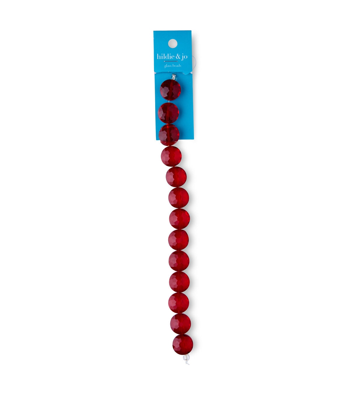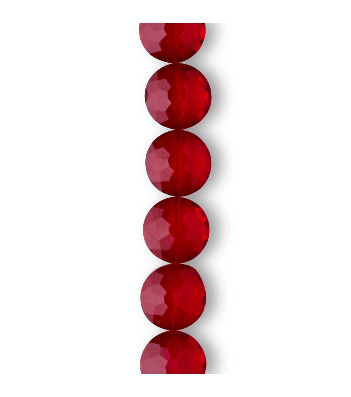 Create beautiful DIY jewelry projects with the hildie & jo Glass Crystal Faceted Coin Bead Strand - Red. These coin-shaped beads are faceted and sparkle. This 7-inch strand contains about 13 beads, each measuring 14 mm in width and 10 mm in depth. Use these beads to make pretty necklaces or bracelets for you and your loved ones.