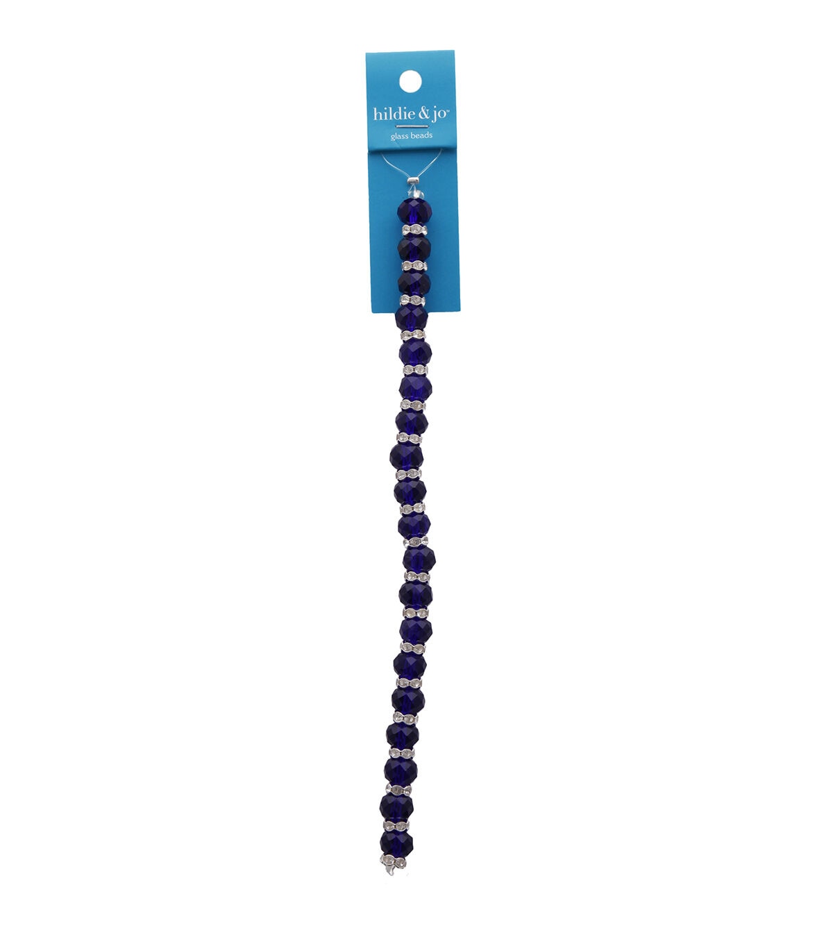 Create gorgeous custom jewelry pieces using the hildie & jo Crystal Glass Bead Strand with Metal Spacers - Royal Blue. This 7-inch strand contains faceted beads measuring 7 mm x 10 mm and spacer beads. You can use these beads to design necklaces, bracelets and more. They will also make a great addition to the gift basket of a jewelry designer.
