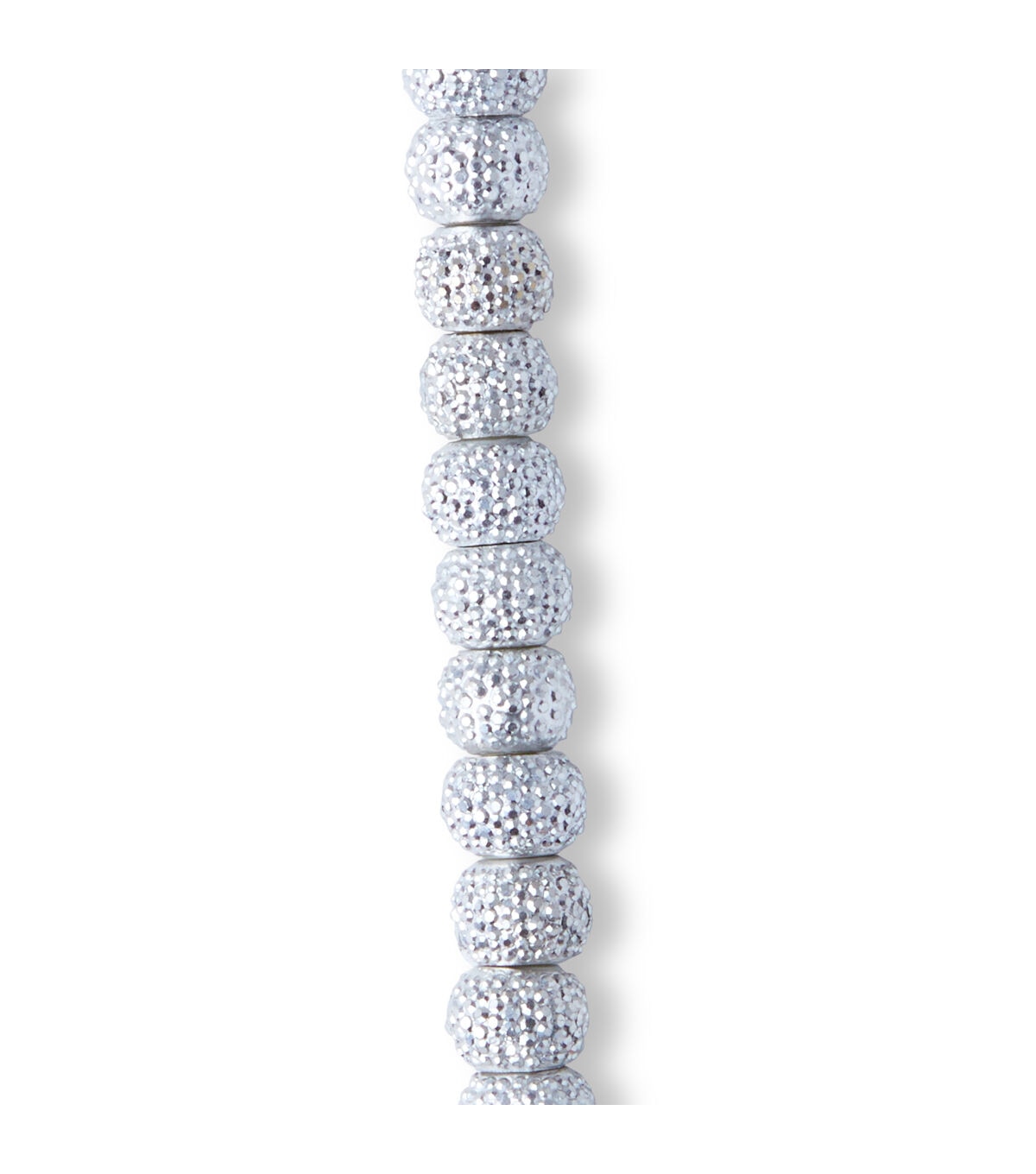 Add drama and sparkle to your jewelry creations with these marvelous lightweight beads. Made from acrylic, they have faceted rhinestone-like bumps on the surface that catch the light and gleam and glitter. Size of beads: 8 x 10mm. Color: Silver