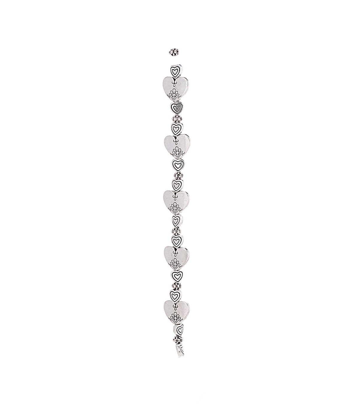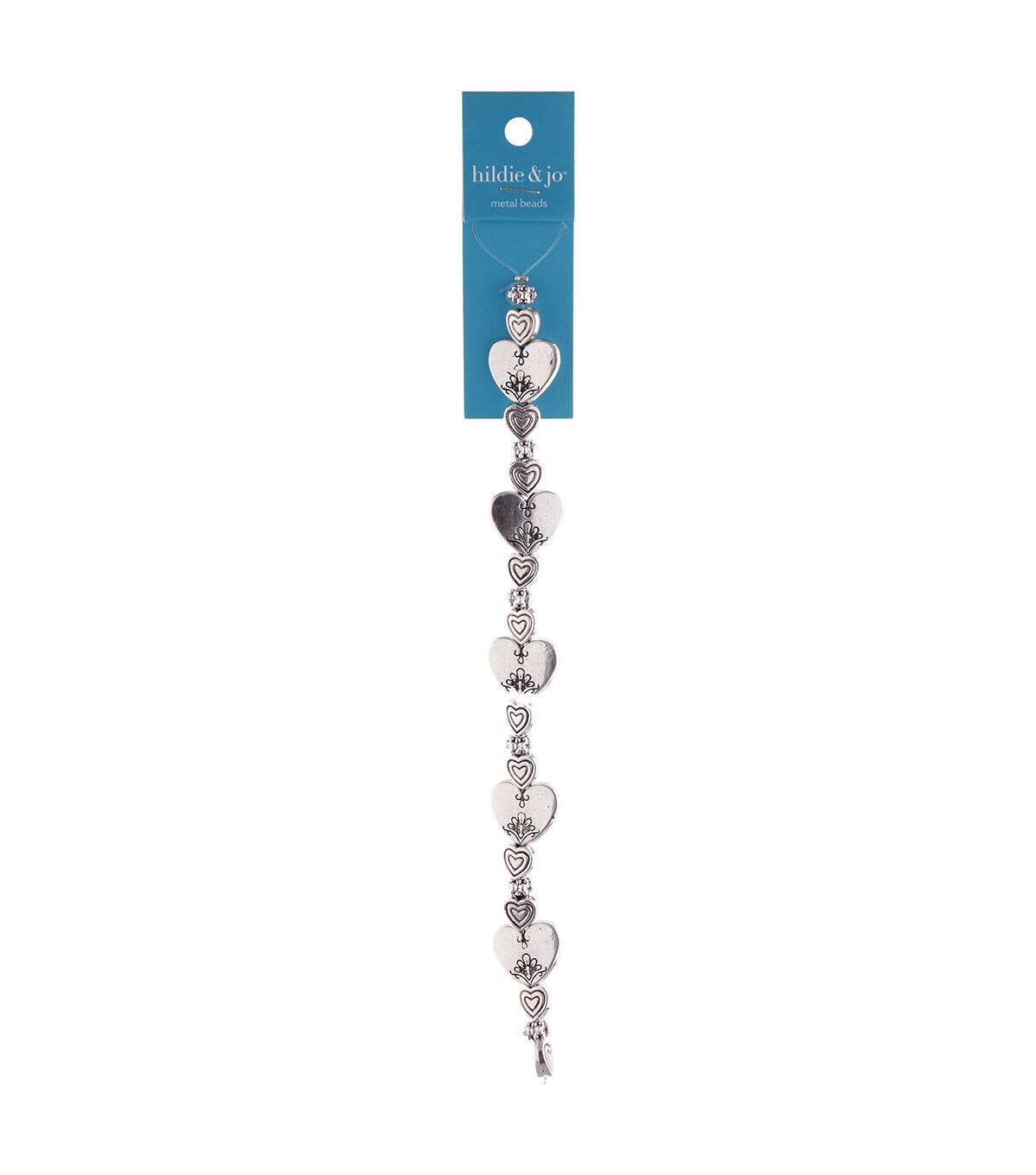Craft a lovely necklace, backpack charm, anklet, pair of earrings or bracelet for a loved one using the hildie & jo Love Metal Strung Beads - Silver. Pretty heart-shaped beads and small rhinestones are included in this 7-inch bead strand. You can also gift it to a jewelry-making or beading enthusiast.