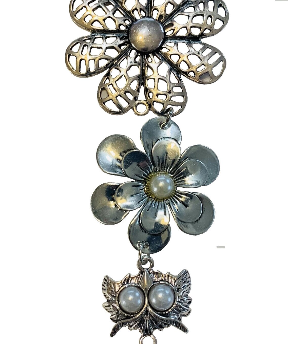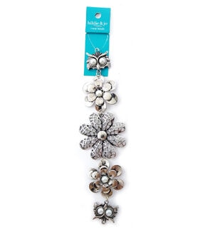 Add some quirk to your jewelry projects with the hildie & jo Metal Flower & Owl Bead Strand with Pearl - Silver. This metal wire strand comes with flower-shaped beads in a silver tone along with owl-shaped beads. The flower beads have either cutout petals or shiny smooth petals with a pearl in the center.