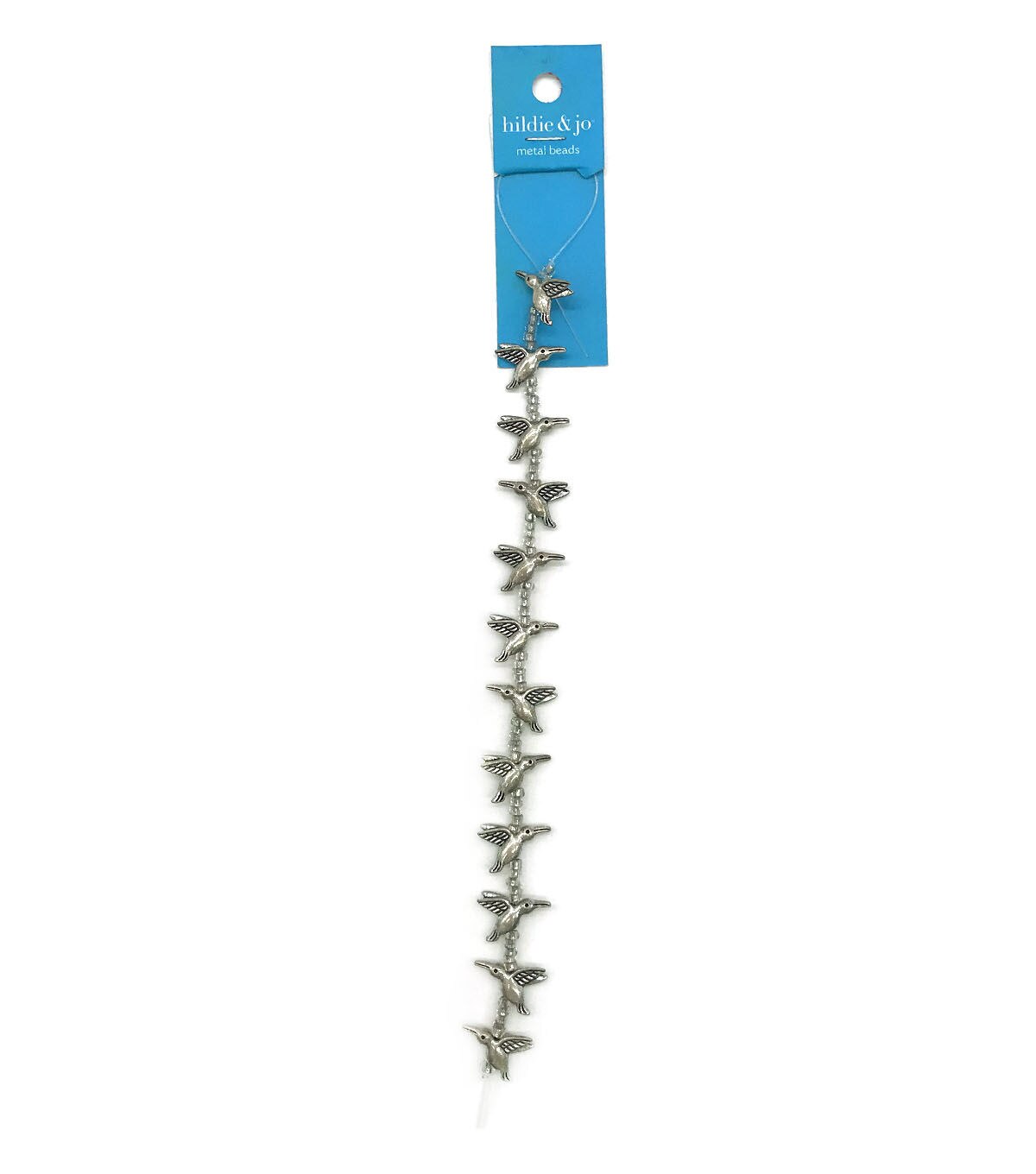 Crafting will be exciting for your little bird lover with the hildie & jo Metal Hummingbird Bead Strand - Silver. This strand includes metal beads resembling hummingbirds and clear spacer beads. Your little one can use them to create fun bracelets, necklaces, anklets and more. They can also gift the finished versions to their loved ones.