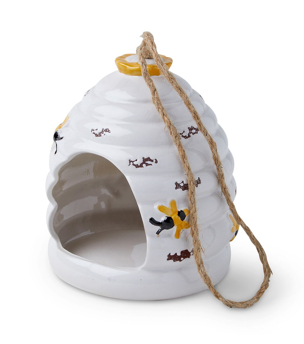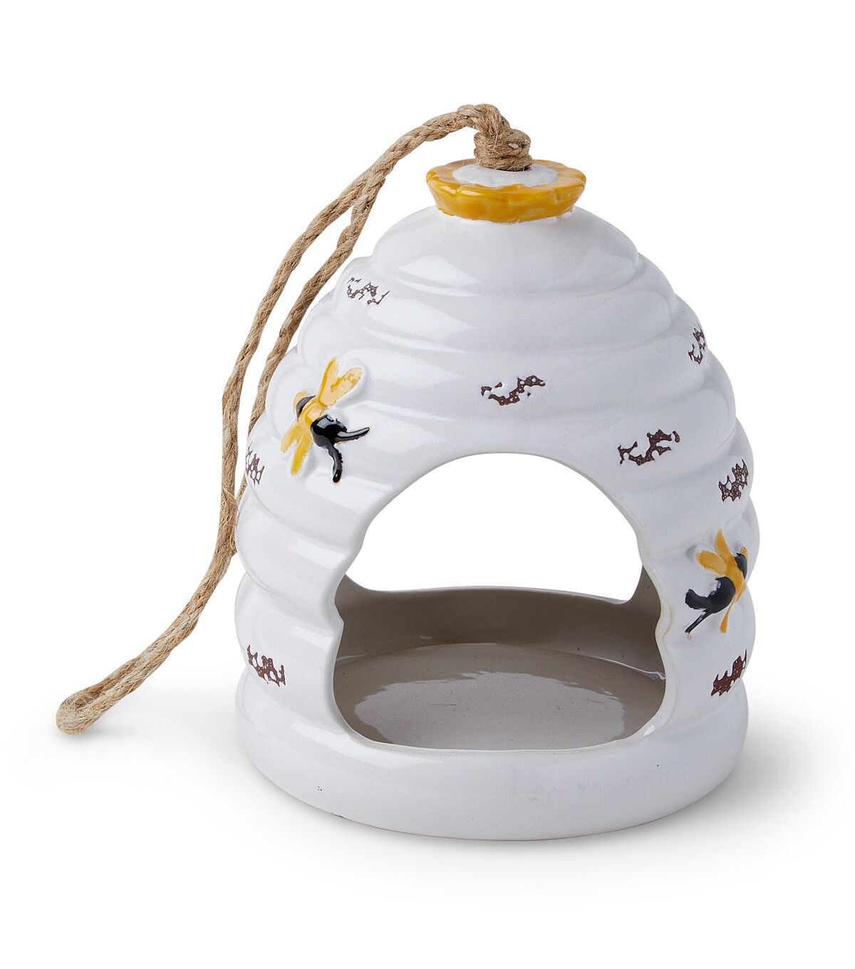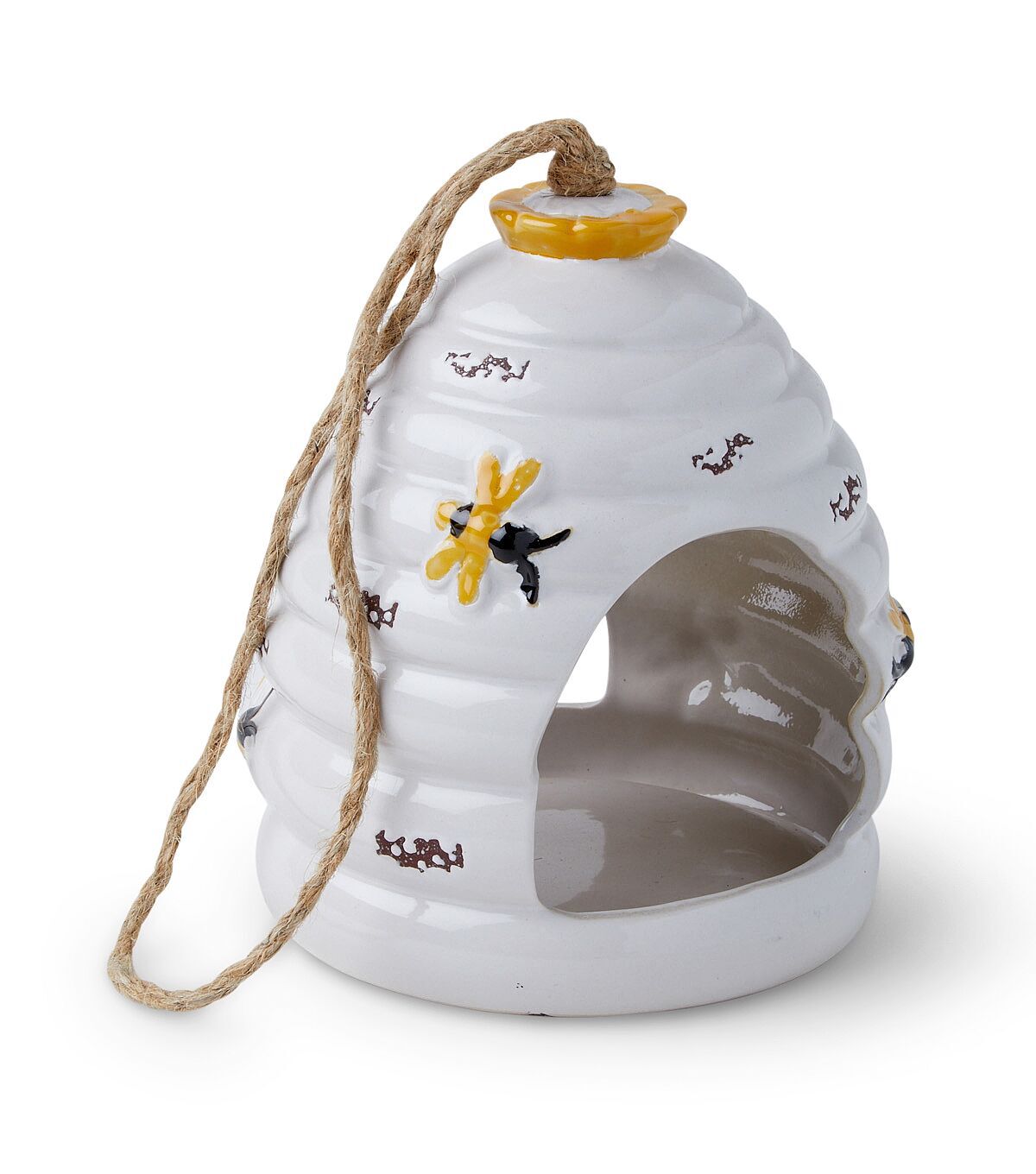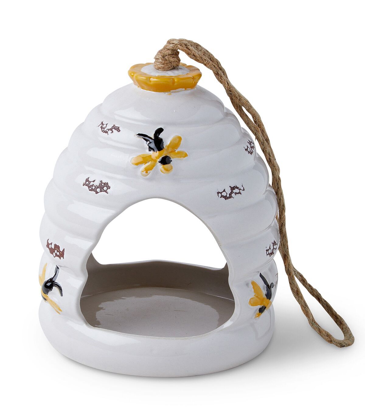 The Spring White Ceramic Beehive Bird Feeder by Place & Time will make a lovely addition to your garden decor. This bird feeder is shaped like a beehive and sports a print of bees. Team it with a birdbath and display them in your front yard for your chirpy friends to gather.