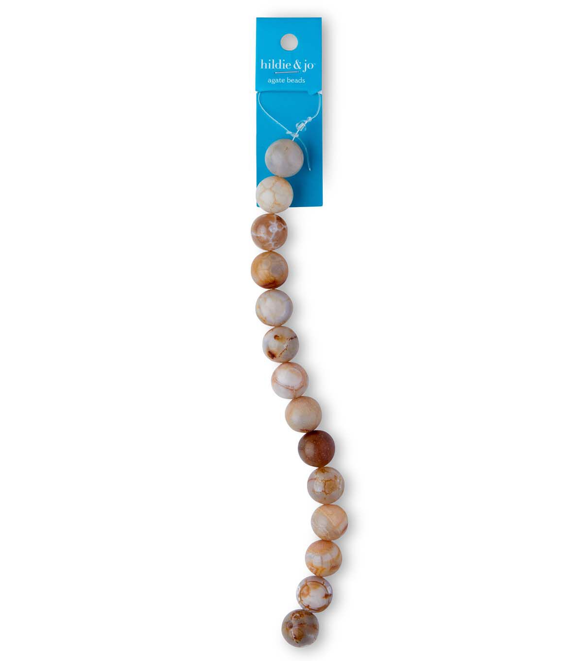 Unleash your creativity with the hildie & jo Round Agate Strung Beads - Tan & Ivory. Beautiful, round agate beads sporting tan and ivory hues are strung on this strand. Team them with stunning spacers and charms to craft an eye-catching bracelet or necklace for a loved one or yourself.