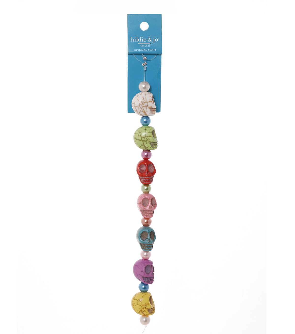 Make the hildie & jo Turquoise Stone Skull Bead Strand a part of your jewelry-making supplies. You can use this strand of skull-shaped beads to create quirky, customized jewelry. Add cord, findings and charms for a beautiful, one-of-a-kind look and mix with other strands to design necklaces, charms bracelets and earrings.