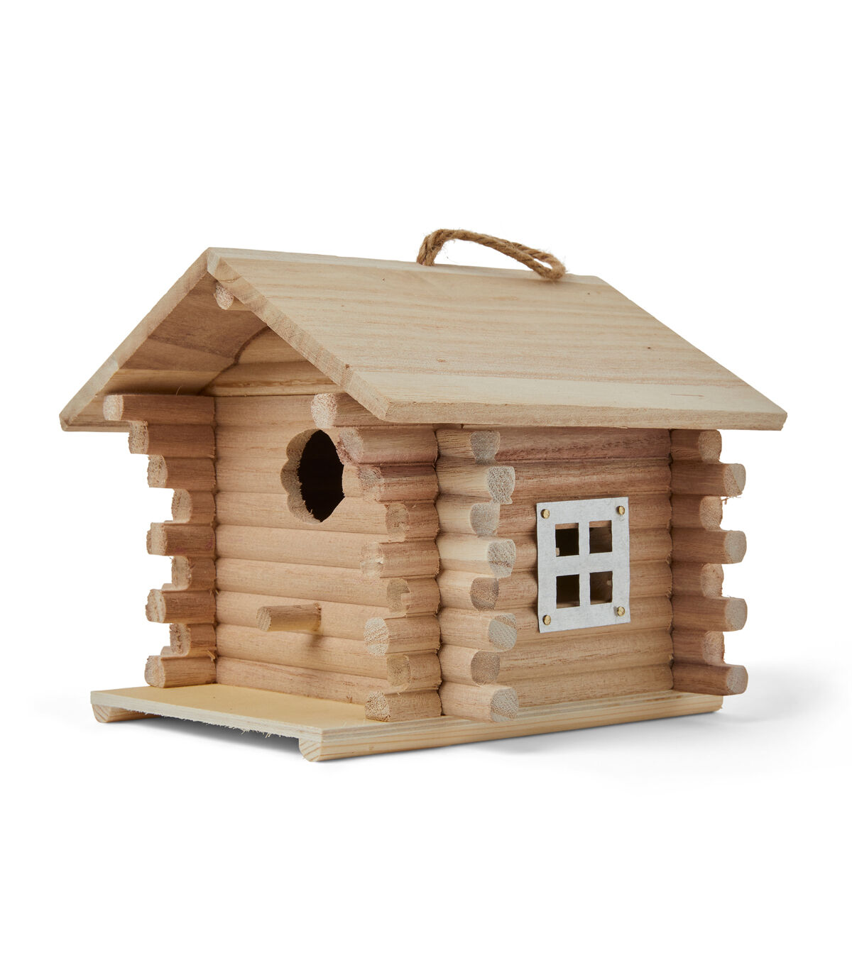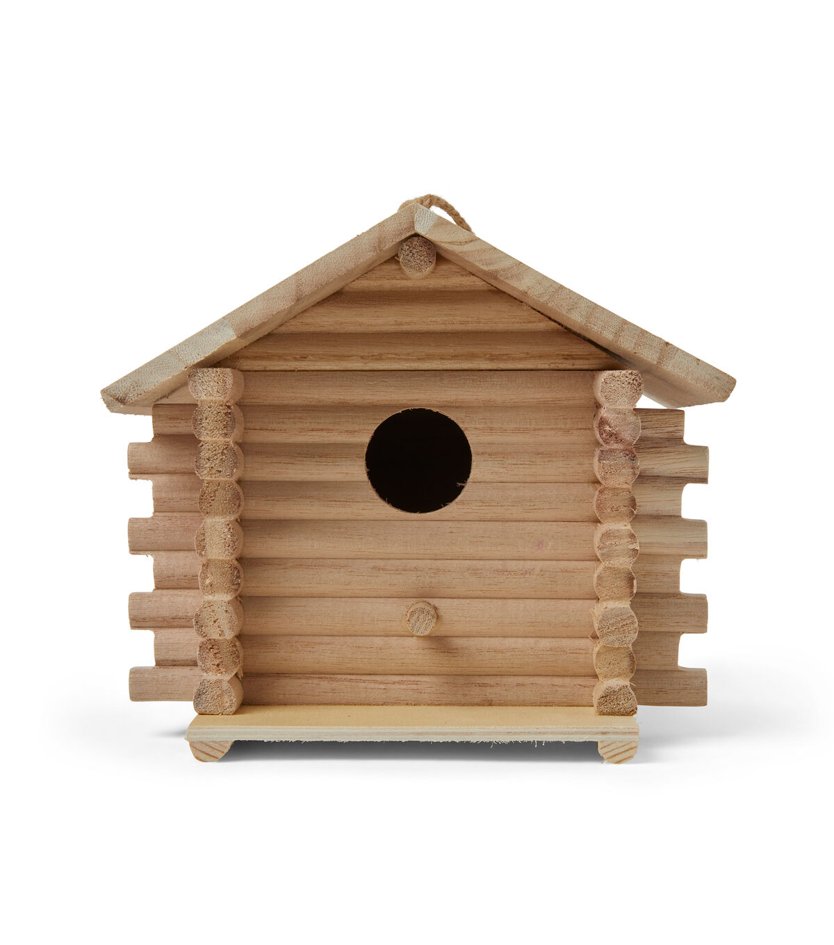 Attract beautiful birds to your patio or front yard using the Park Lane Unfinished Wood Log Cabin Birdhouse. This unfinished wooden birdhouse resembles a log cabin. It comes with a cord on top for easy display. Paint it in alluring shades and gift it to a friend.