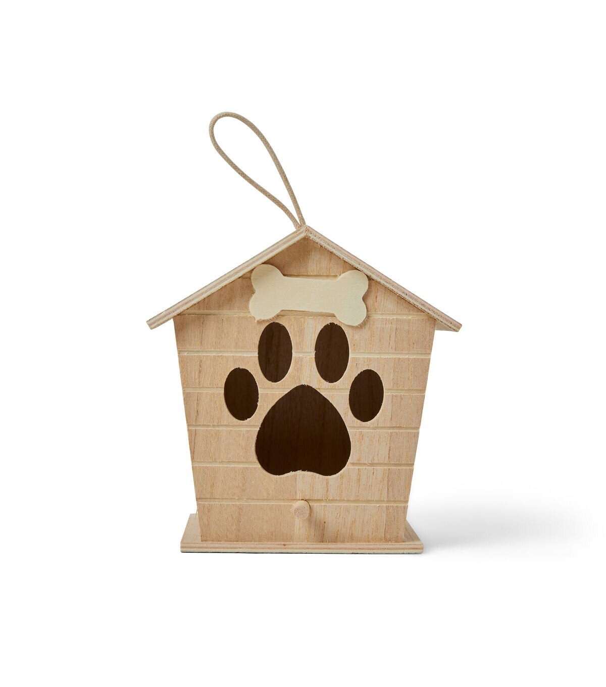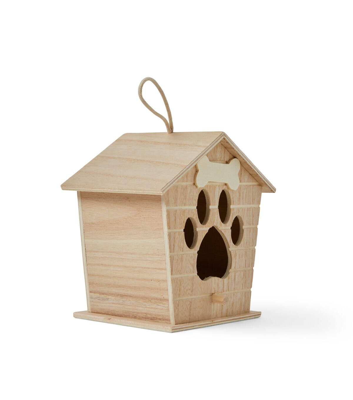 Show your love for dogs and birds with the Park Lane Wooden Kennel Birdhouse with Paw Cutout. This unfinished birdhouse resembles a kennel with a cutout shaped like a paw mark. It will make a great addition to your home decor. Paint it in bright hues, embellish it with glitter and hang it on your porch or patio for visual flair.