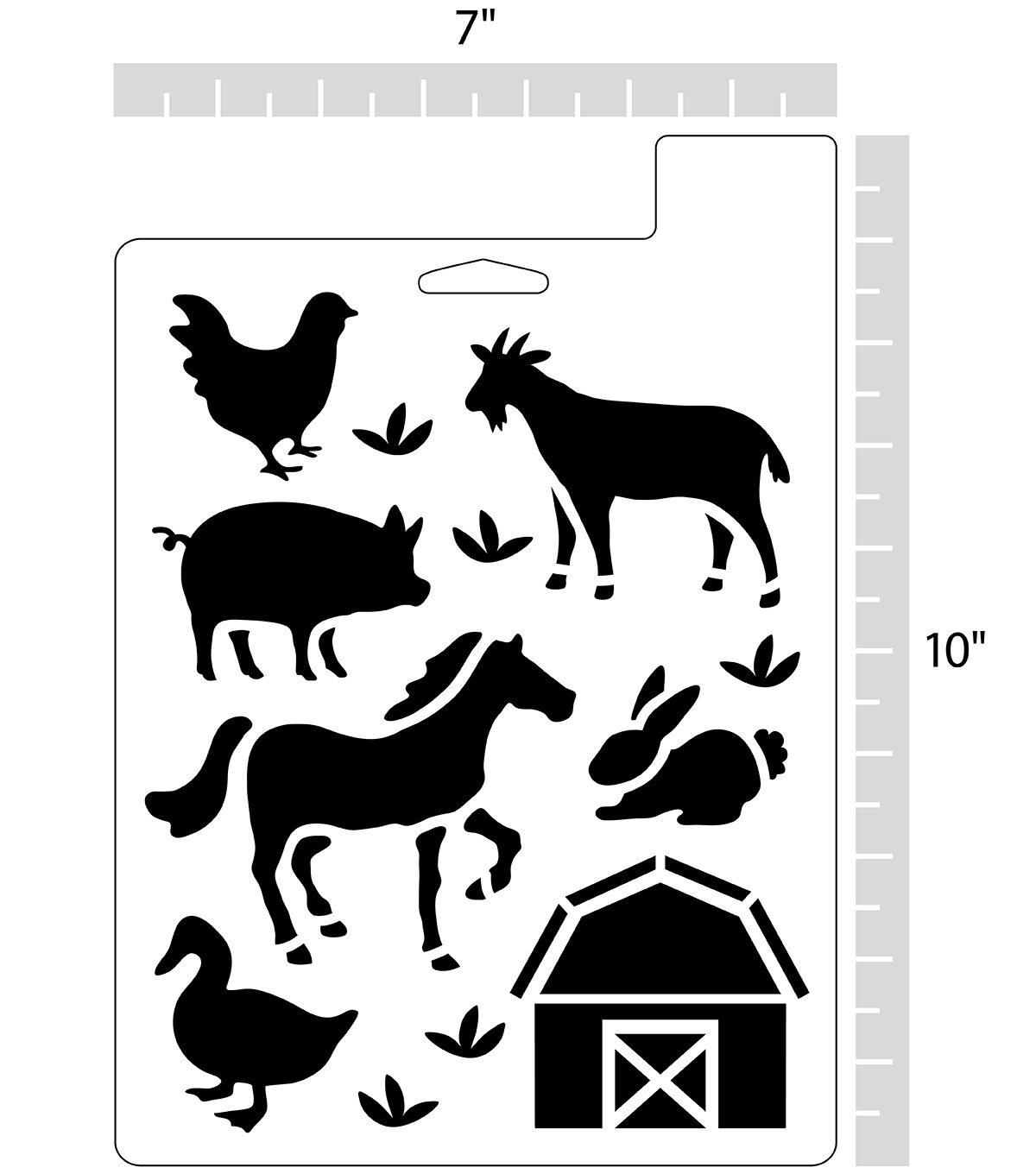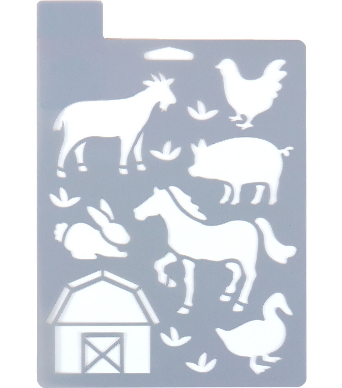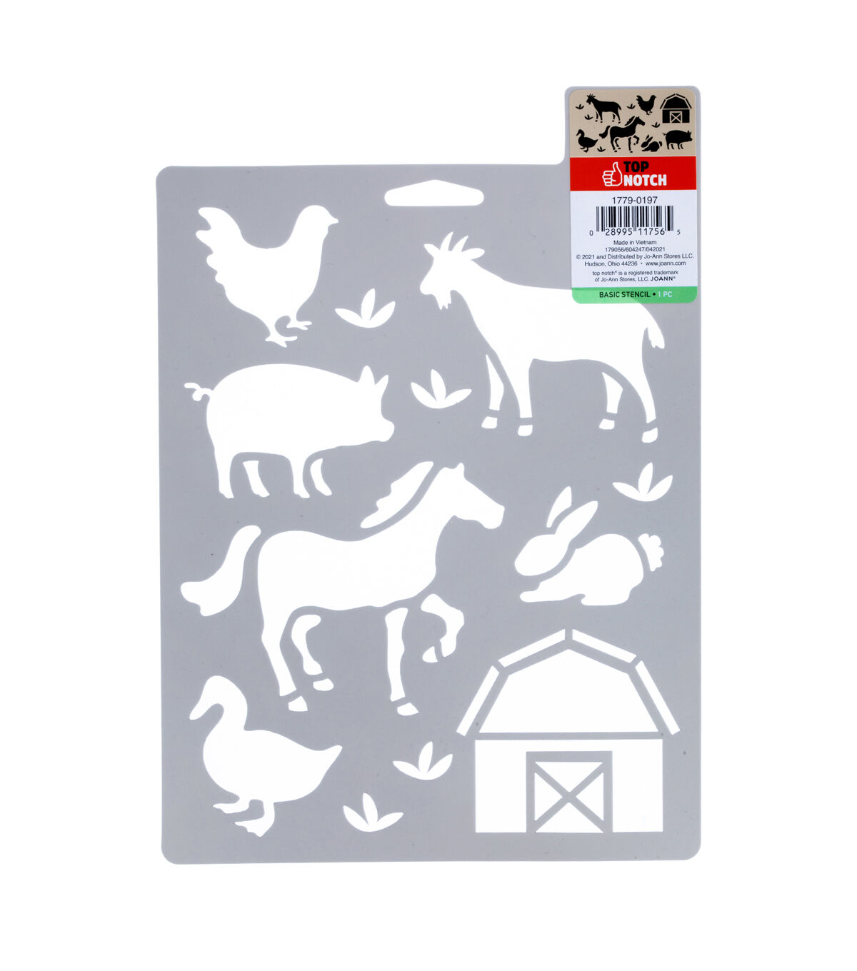 Add a touch of farm life to your creations with the Top Notch Farm Animals Stencil Sheet. Featuring a variety of farm animals, this stencil sheet is sure to give your project a country vibe. Durable and reusable, this plastic stencil sheet is easy to clean up with mild soap and warm water. Create fun, farm-inspired crafts with the Top Notch Farm Animals Stencil Sheet. Add a touch of farm life to your creations with the Top Notch Farm Animals Stencil Sheet. Featuring a variety of farm animals, this stencil sheet is sure to give your project a country vibe. Durable and reusable, this plastic stencil sheet is easy to clean up with mild soap and warm water. Create fun, farm-inspired crafts with the Top Notch Farm Animals Stencil Sheet.