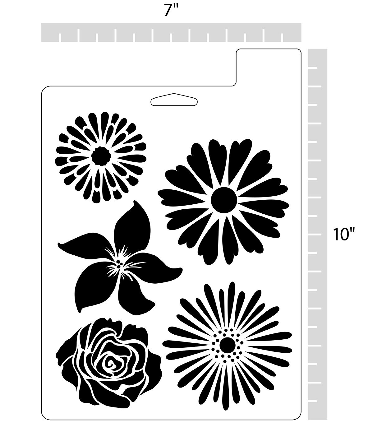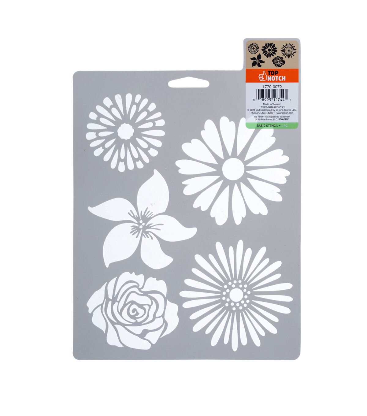 Add a floral touch to your crafts with the Top Notch Flowers Stencil Sheet. This sheet features five flower varieties to add a fresh touch to any project. Durable and reusable, this plastic stencil sheet is easy to clean up with mild soap and warm water. Complete your project with a stenciled flower from the Top Notch Flowers Stencil Sheet. Add a floral touch to your crafts with the Top Notch Flowers Stencil Sheet. This sheet features five flower varieties to add a fresh touch to any project. Durable and reusable, this plastic stencil sheet is easy to clean up with mild soap and warm water. Complete your project with a stenciled flower from the Top Notch Flowers Stencil Sheet.