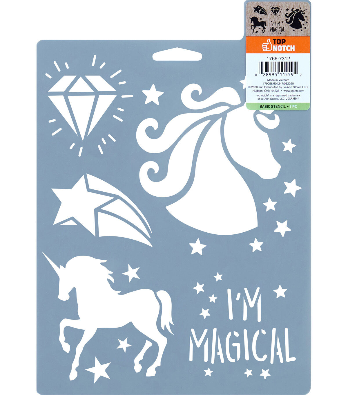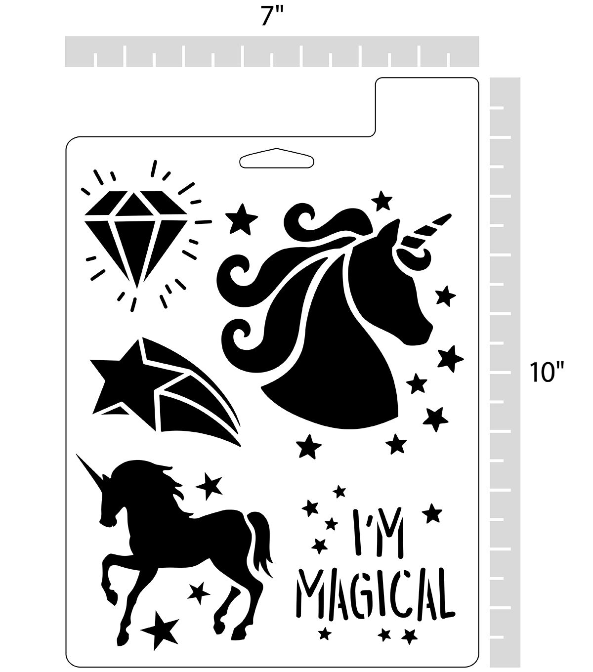 Make your projects magical with the Top Notch Unicorn Stencil Sheet. Featuring unicorns and other mystical icons, this stencil sheet is fun and perfect for any colorful project. Durable and reusable, this plastic stencil sheet is easy to clean up with mild soap and warm water. Add fun and charm to your colorful creations with the Top Notch Unicorn Stencil Sheet.