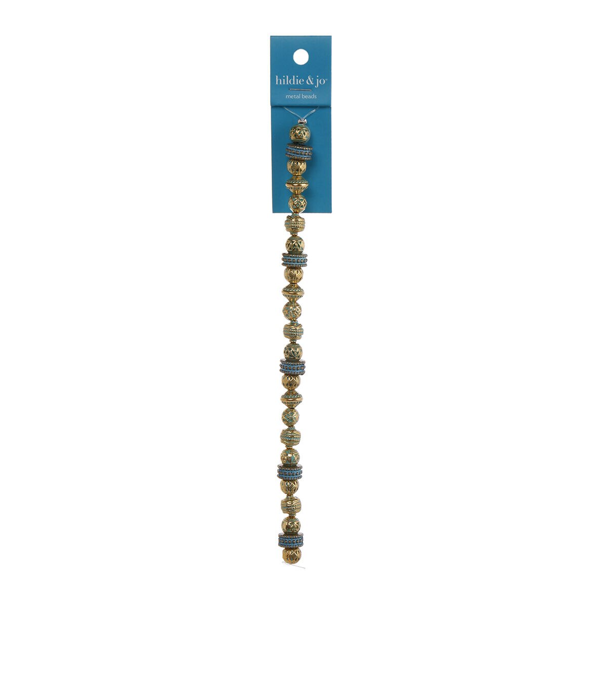 Lend a dazzling appeal to any DIY jewelry project with the hildie & jo Patina Metal Strung Beads - Blue. This 7-inch strand is adorned with blue patina beads. Use these beads to make bracelets, earrings, necklaces or other stunning jewelry pieces by teaming them with charms.