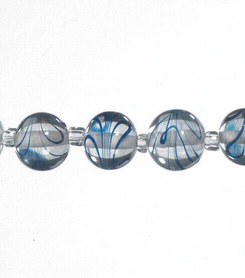 Create beautiful jewelry pieces with the Round Glass Strung Beads - Clear. The beads in this strand are clear and sport swirly patterns in a blue shade. They are just what you need to make eye-catching bracelets, earrings and more. This strand also includes coordinating spacer beads. Team them with pendants or gemstones to enhance DIY jewelry projects.