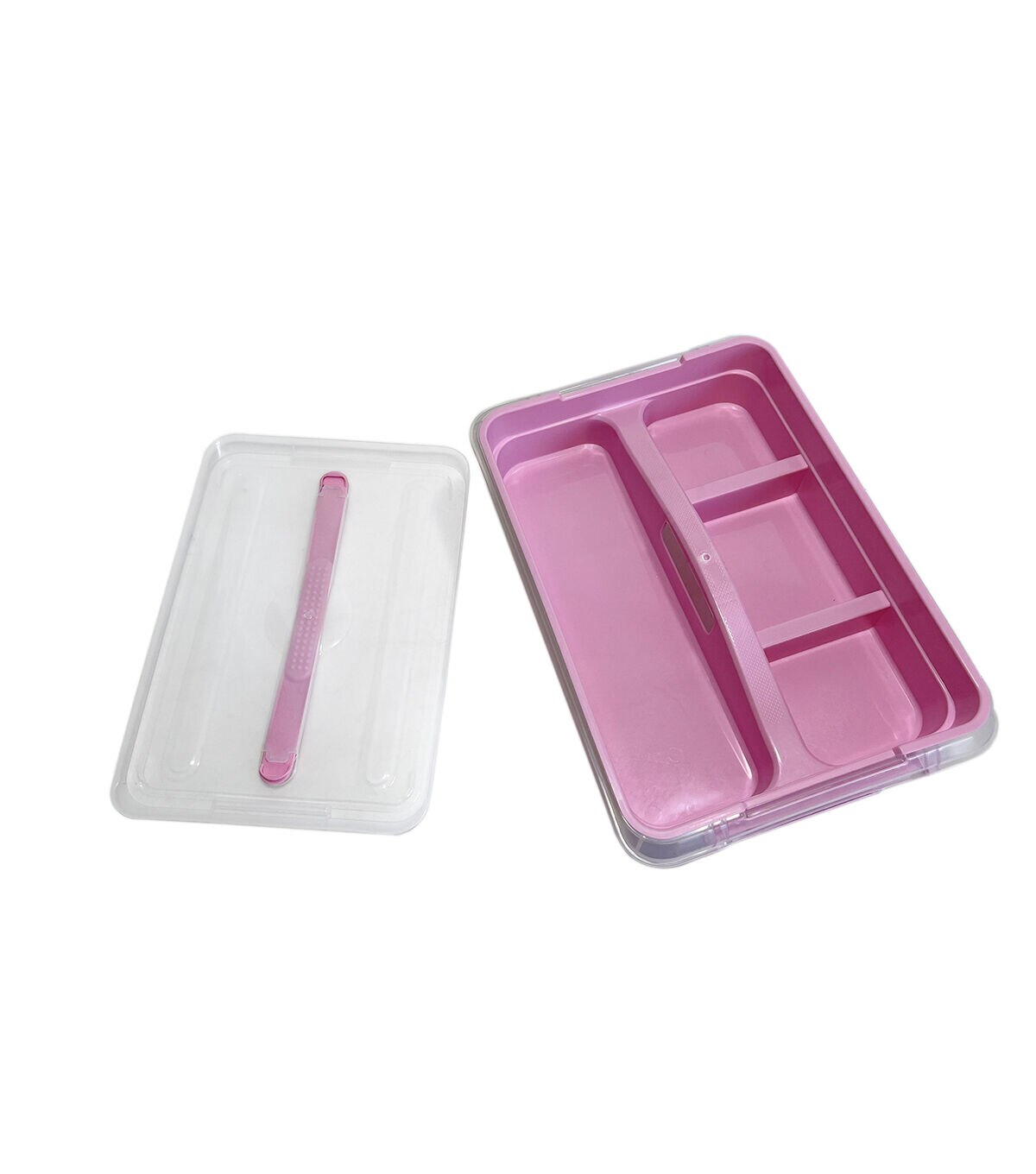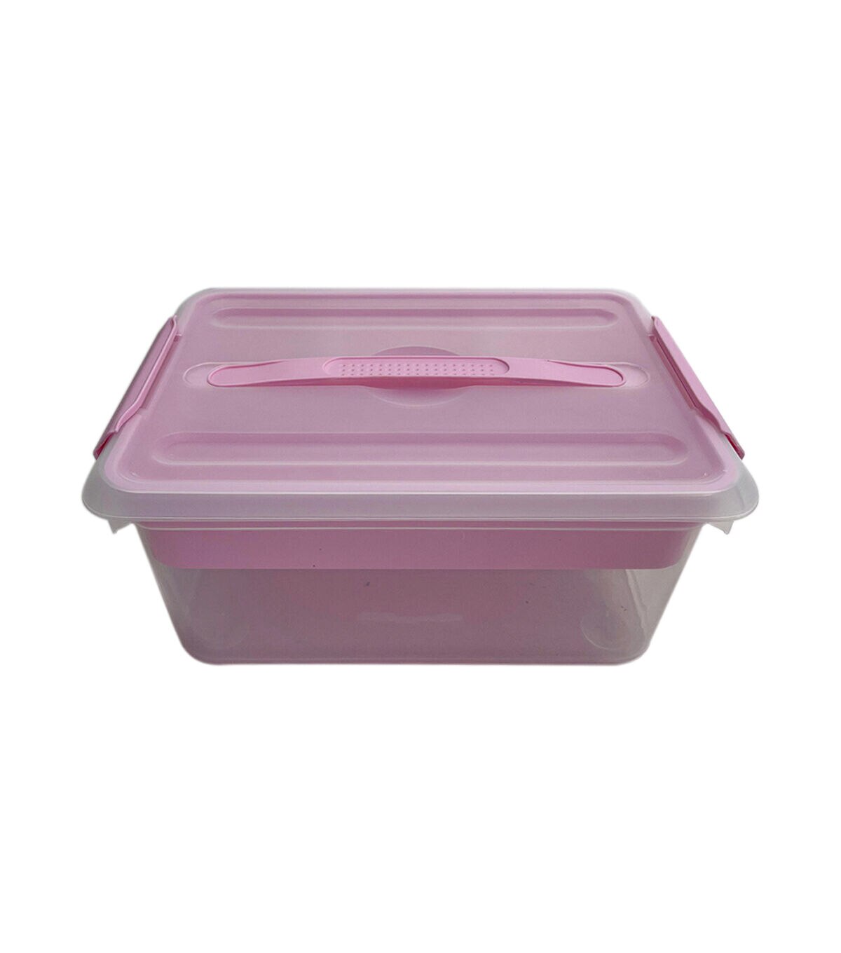 The Top Notch Latching Storage Bin with Handle - Pink & Clear offers you a great storage solution for your craft essentials. This clear and pink storage bin comes with a handle for ease of carrying and a tray designed with compartments in various sizes. You can also use it to store photos, keepsakes, art supplies and more.