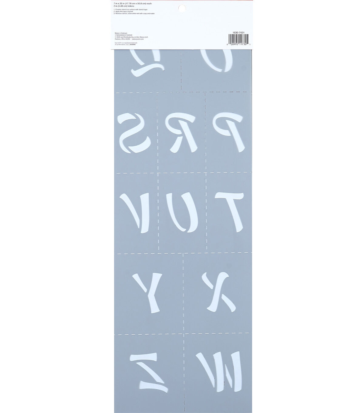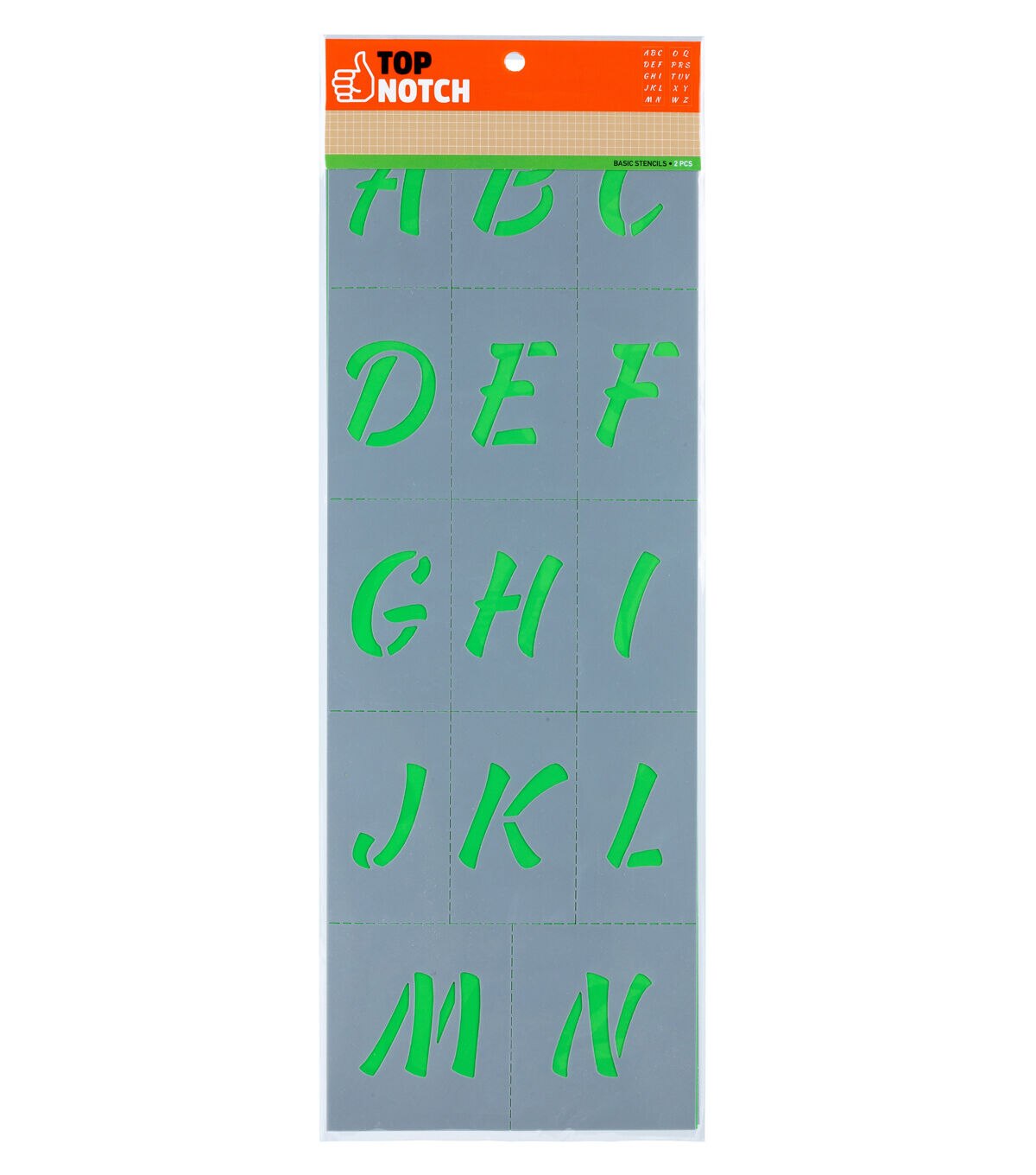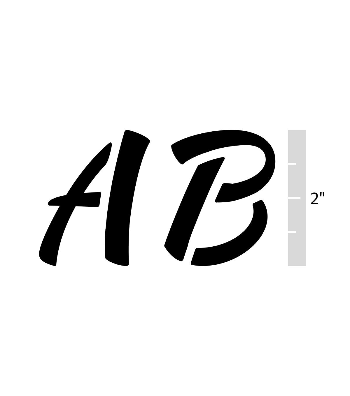 Stencil words and phrases easily with the Top Notch Alphabet Script Upper Pack. This 2-pack of 2" letters allows the crafter to create any word or phrase for added personalization to a project. Durable and reusable, these plastic stencil sheets are easy to clean up with mild soap and warm water. Add the Top Notch Alphabet Script Upper Pack to your stencil collection for a versatile set of letters that are simple and easy to use.Stencil words and phrases easily with the Top Notch Alphabet Script Upper Pack. This 2-pack of 2" letters allows the crafter to create any word or phrase for added personalization to a project. Durable and reusable, these plastic stencil sheets are easy to clean up with mild soap and warm water. Add the Top Notch Alphabet Script Upper Pack to your stencil collection for a versatile set of letters that are simple and easy to use.