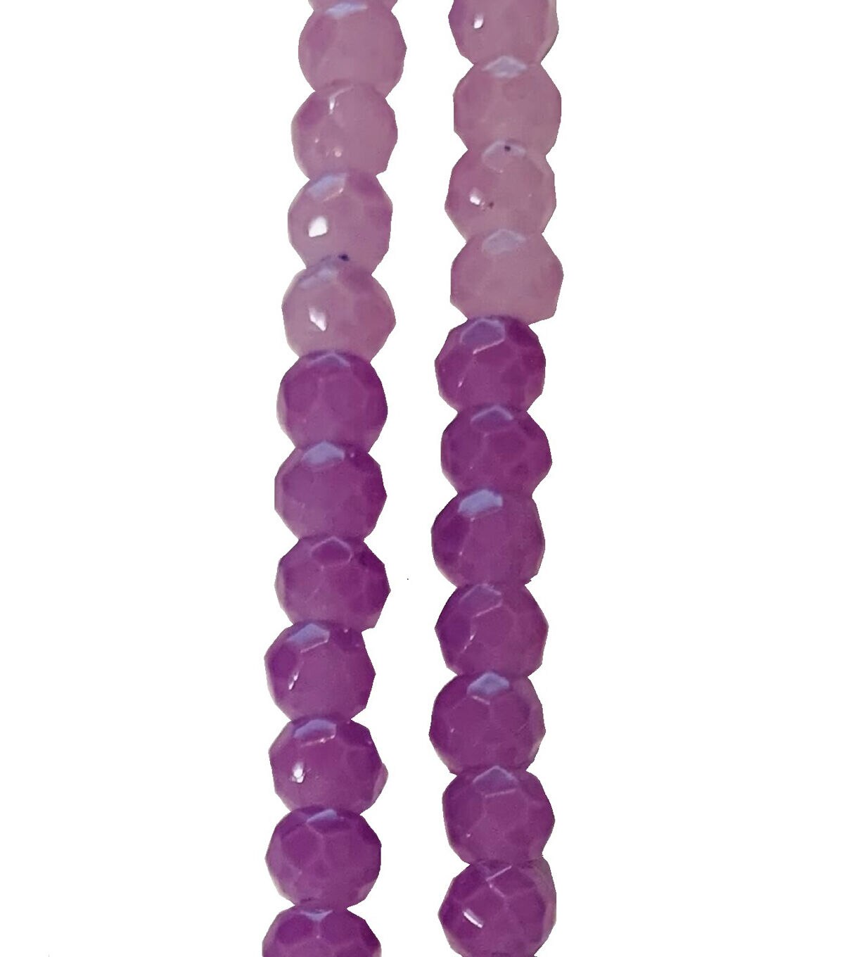 The hildie & jo Glass Bead Strands - Light Pink Ombre will just be perfect to create unique jewelry designs. This pack includes two strands of beads. Each of them comprises beads that sport light pink, light purple and purple shades. These beads are made from stone and are faceted. You can use them together or team with other beads to create a unique piece.