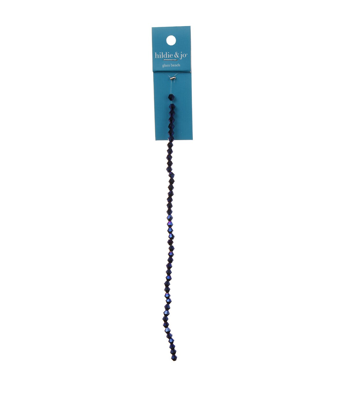 Your jewelry creations are sure to stand out with the hildie & jo Bicone Glass Bead Strand - Metallic Blue. This pack contains a strand of faceted bicone beads in a metallic blue hue. They can be used as is or combined with other beads, chains and findings to design statement necklaces, bracelets or earrings.