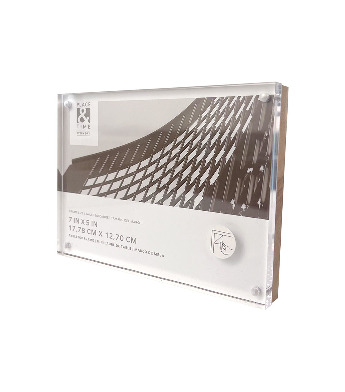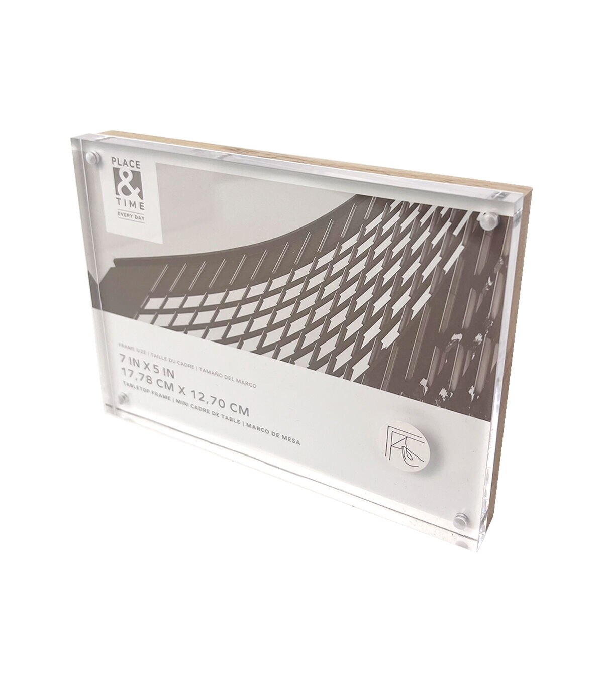 Liven up your home decor with the elegant Wood & Acrylic Block Tabletop Frame by Place & Time. This photo frame is designed with an acrylic photo panel and a wooden base for visual appeal. Add your favorite photo to it and showcase it on a ledge in the living room or bedroom. You can also team it with coordinating frames to display your most cherished memories.
