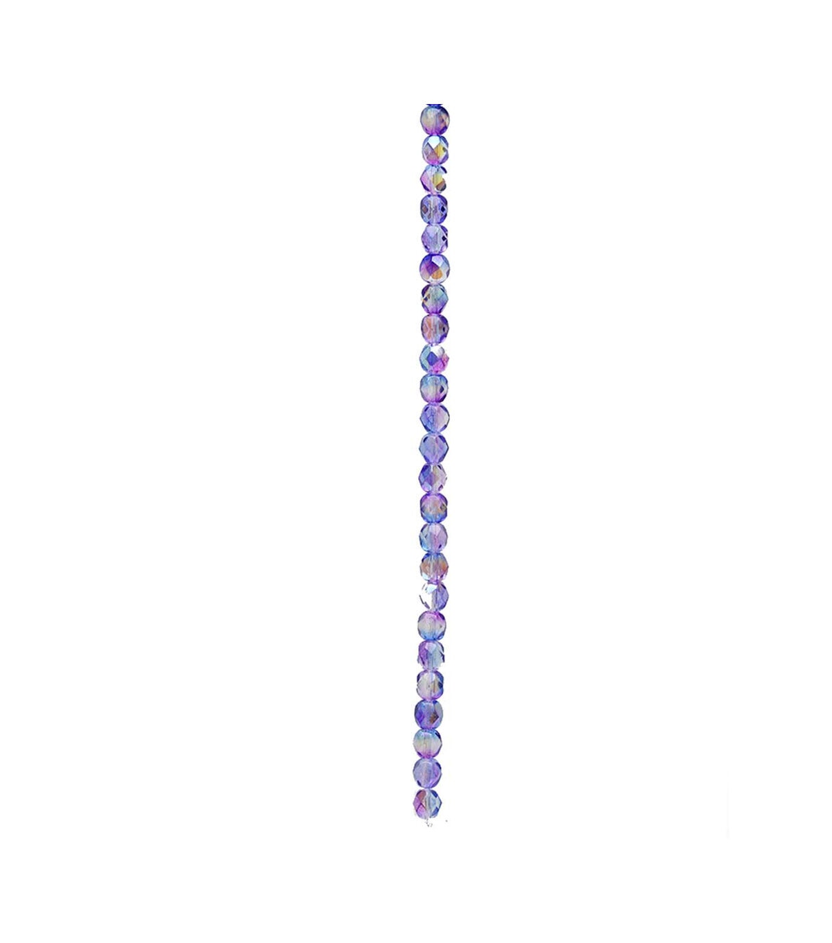 Put together beautiful handmade jewelry using the hildie & jo Aurora Borealis Glass Bead Strand - Rose & Blue. This strand contains fire-polished 6mm round crystal, faceted Czech glass beads with a lustrous aurora borealis finish in the shades of pink and blue. You can string them together to make necklaces, bracelets, earrings and more.