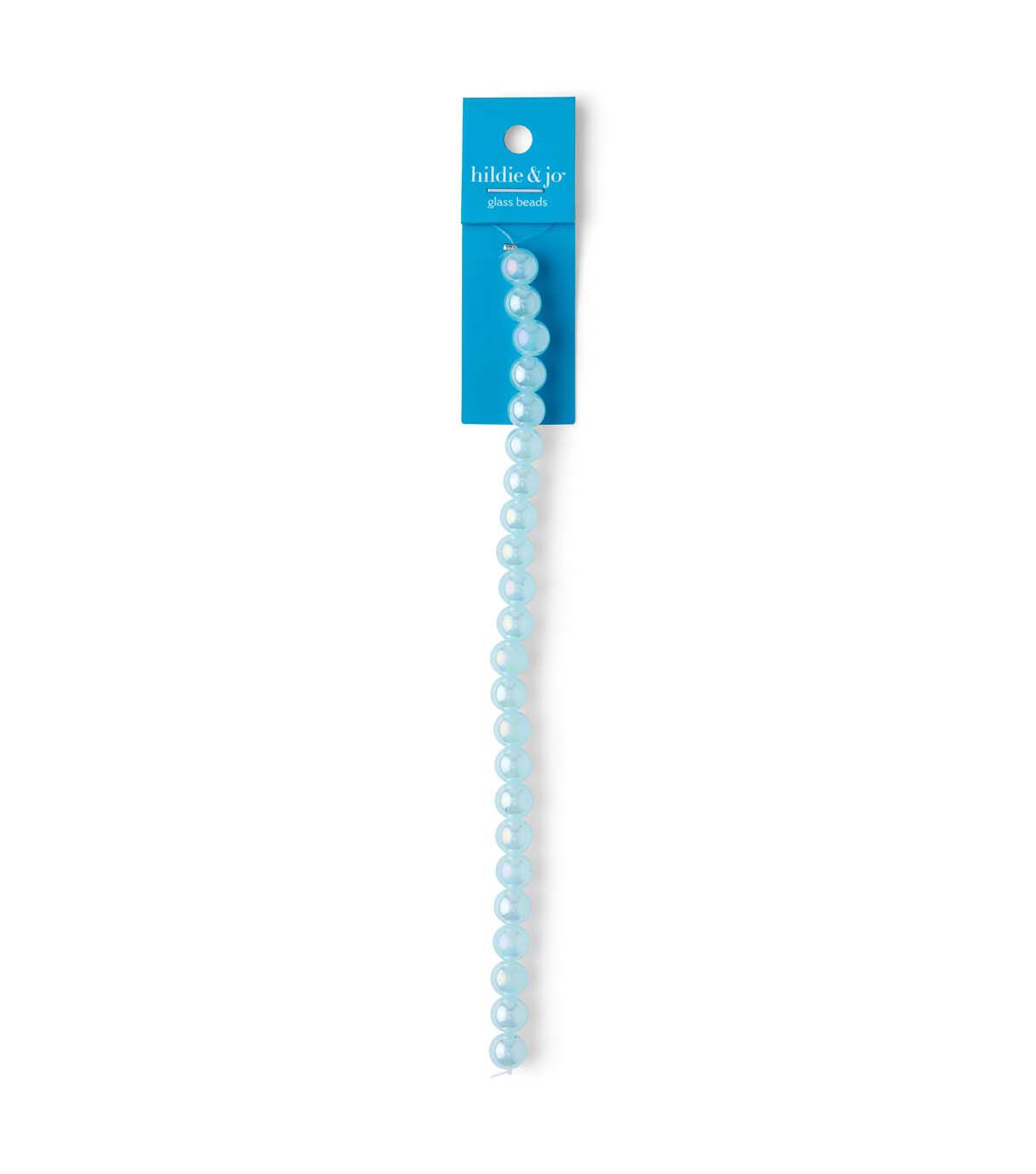 String together necklaces, bracelets, anklets, backpack charms and more with the hildie & jo Aurora Borealis Glass Bead Strand - Aqua. This pack contains a strand of round glass beads that sport a beautiful aqua hue. You can use them along with cords, chains, charms and more to create unique and customized designs.