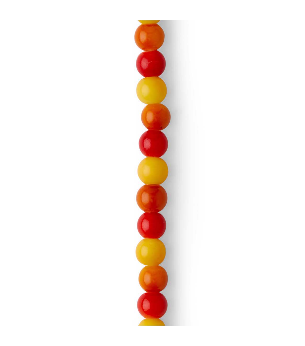 The hildie & jo Round Glass Strung Beads - Orange will enhance your jewelry-making projects. This pack includes a 7-inch strand of polished stone beads sporting an orange shade. Use these beads to craft gorgeous pendants, purse charms, backpack blings and more. You can also pair them with other stone beads to create necklaces, bracelets and anklets.