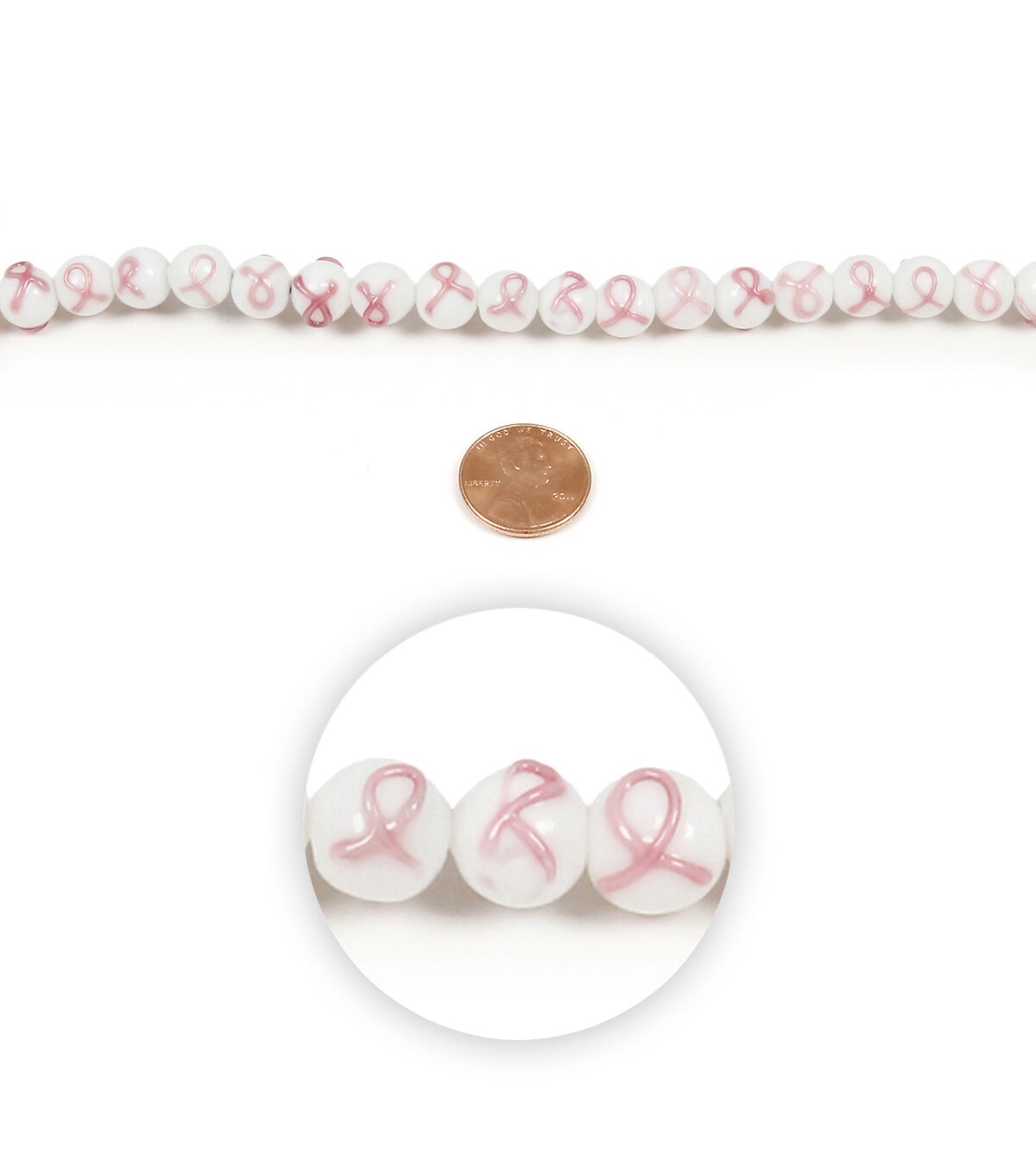 The hildie & jo Round Glass Bead Strand - Pink Cancer Ribbon on White will be a great addition to your jewelry-making supplies kit. This pack contains round, opaque, 8 mm white glass beads accented with a glass pink ribbon design. You can use them to craft, DIY, beading and jewelry projects. You can wear the finished jewelry pieces to a cancer awareness event to show your support.