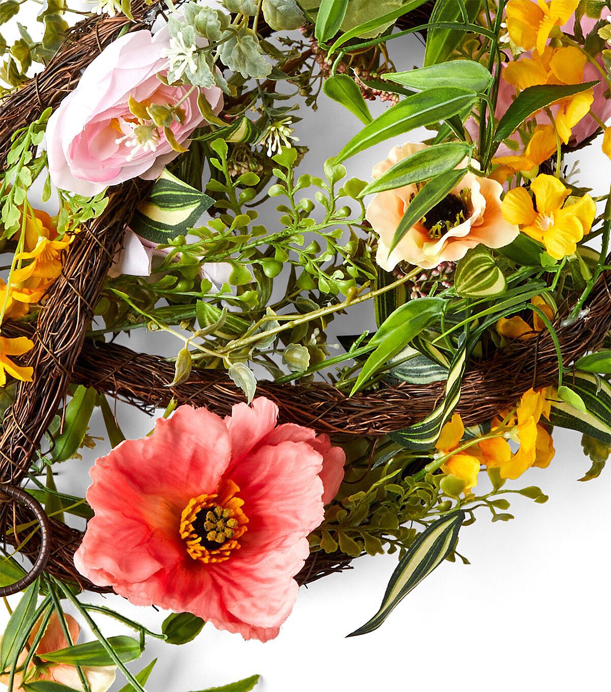 Add a splash of spring colors to your home with the Spring Poppy & Ranunculus Garland by Bloom Room. The beautiful arrangement of poppies, ranunculus blooms, baby’s breath flowers and berries in this wreath makes it just perfect for your seasonal decor theme. It will make a stunning statement piece for the mantel or entryway wall.