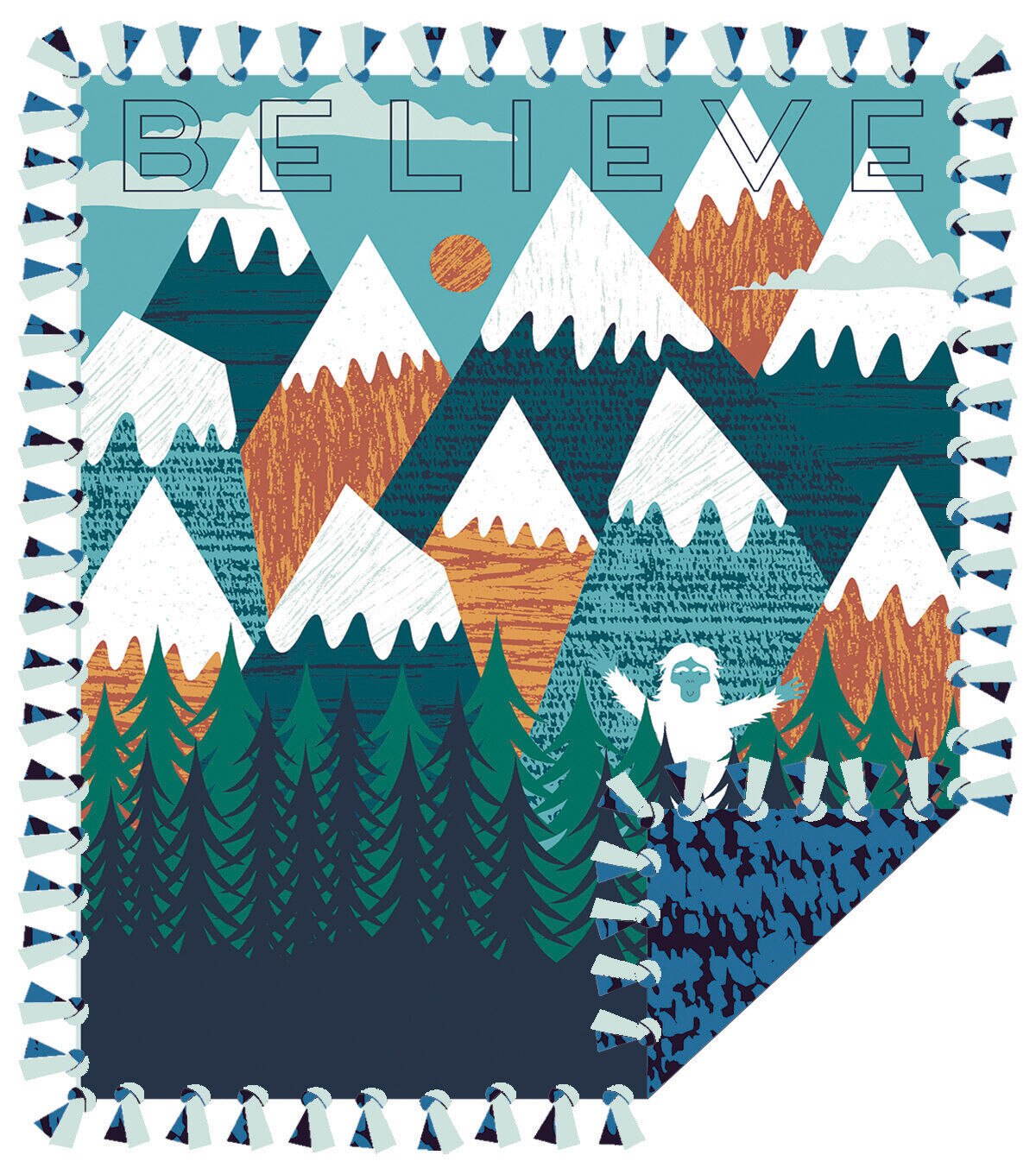 72" Wide Believe in Yeti No Sew Fleece Blanket